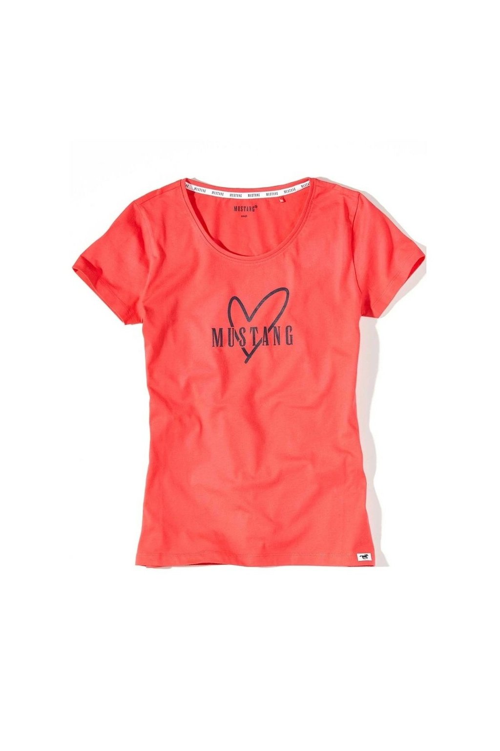 Nadčasový design: Klasický střih s kulatým výstřihem a krátkými rukávy doplňuje decentní potisk srdce a nápisu Mustang, který dodává tričku jemný a stylový nádech.