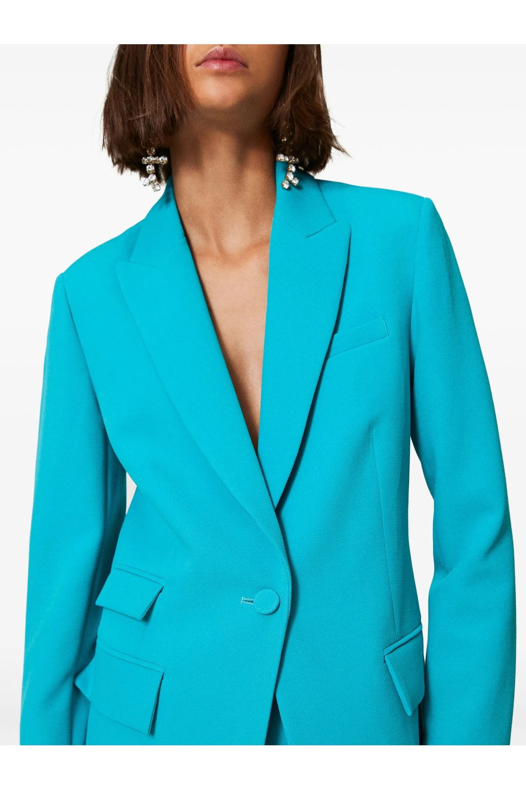 Tento dámský blazer značky TWINSET přináší kombinaci elegance a moderního stylu. Vyrobený je z vysoce kvalitního materiálu, který zaručuje komfort a dlouhou životnost. Svěží tyrkysová barva dodává celkovému vzhledu výraznost a energii, což z něj činí skvělý kousek pro každodenní nošení i speciální příležitosti.