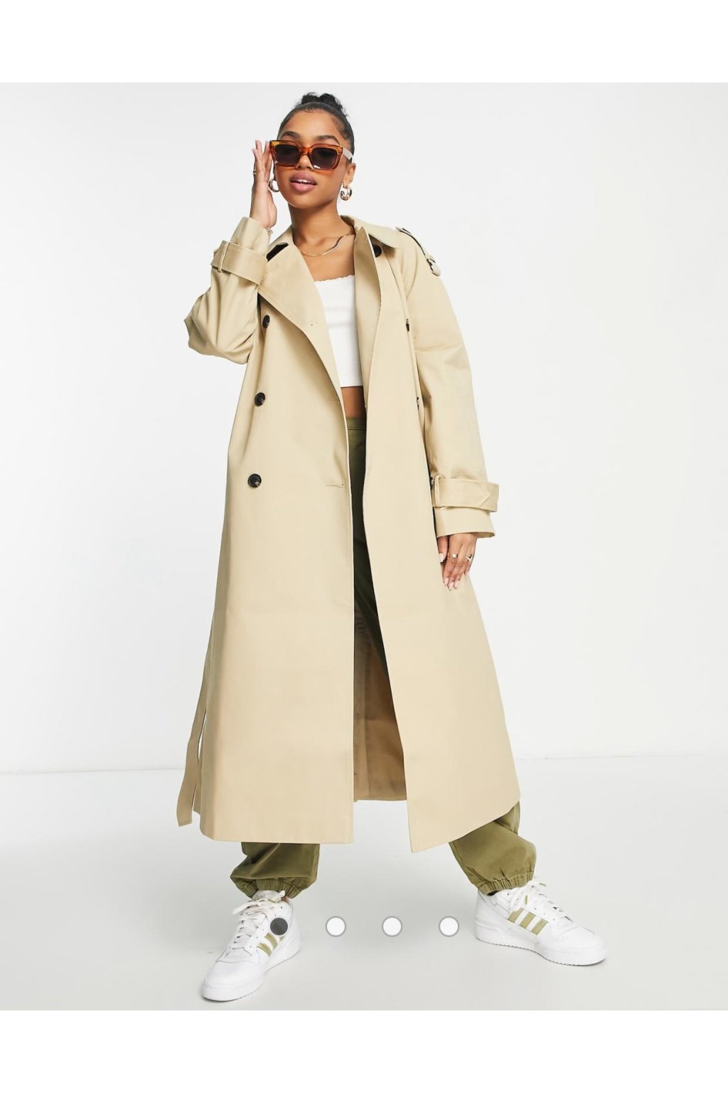 Nadčasový dlouhý trenčkot v odstínu stone (pískově béžová) je elegantní volbou pro každou ženu, která hledá stylový svrchník pro přechodné období. Je ideální jak do města, tak i pro formálnější příležitosti.