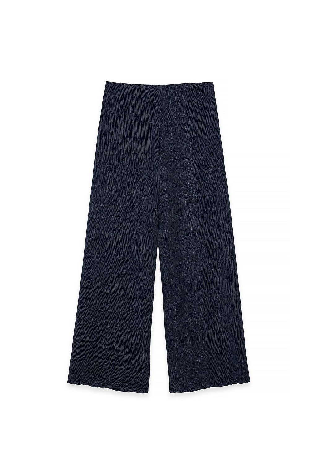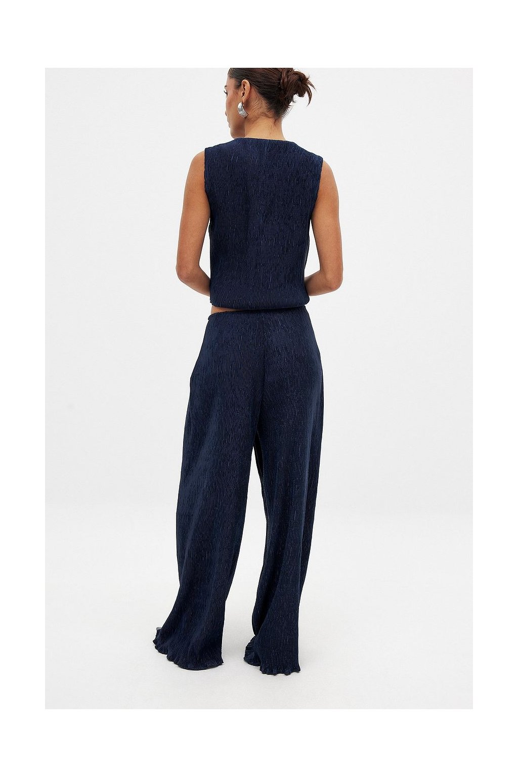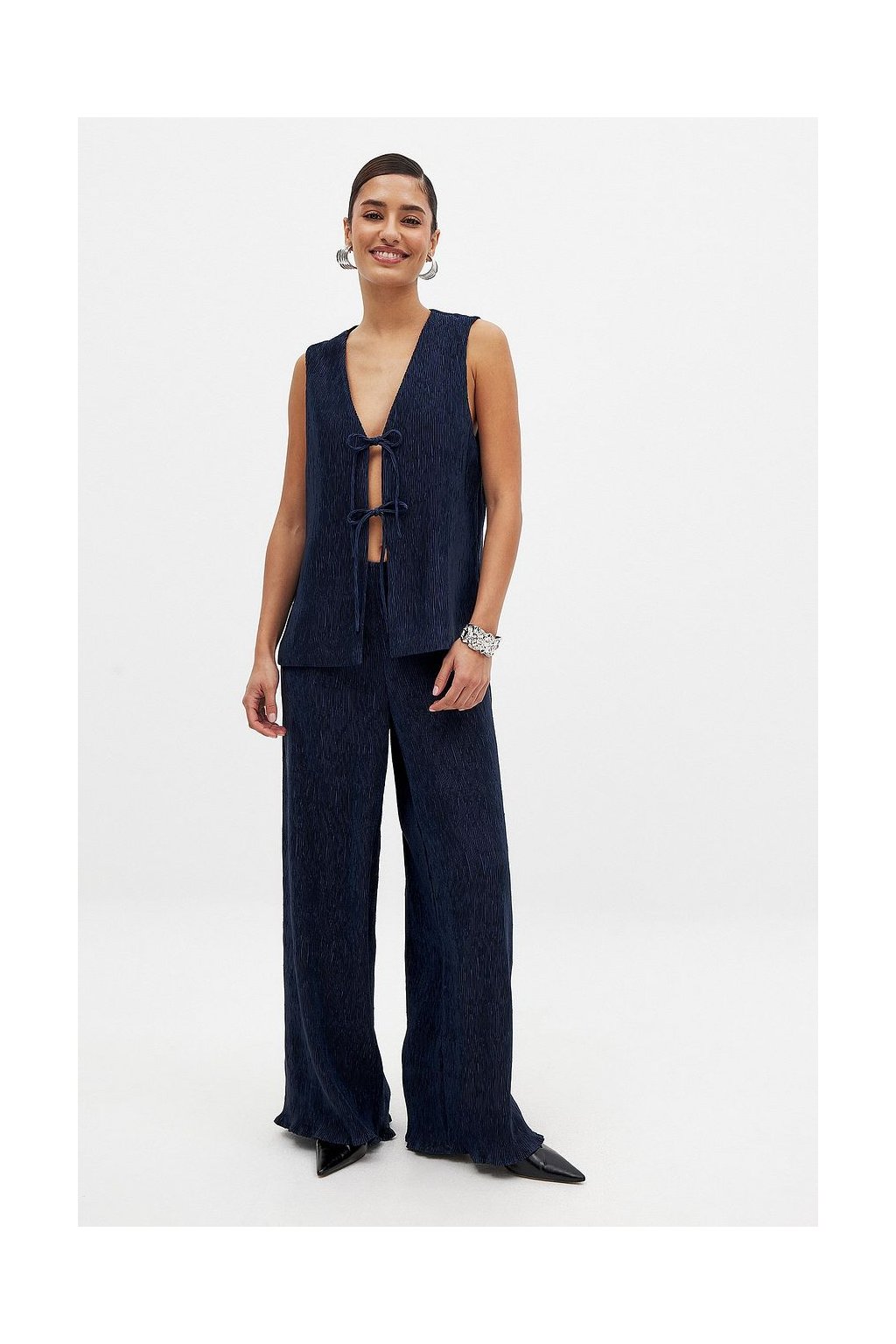 Dodejte svému outfitu stylový a zároveň pohodlný šmrnc s těmito tmavě modrými kalhotami od značky NA-KD. Vyrobeny z jemně strukturovaného materiálu, který vytváří zajímavý vizuální efekt a příjemně obepíná postavu, přičemž stále zachovává vzdušnost a volnost pohybu.