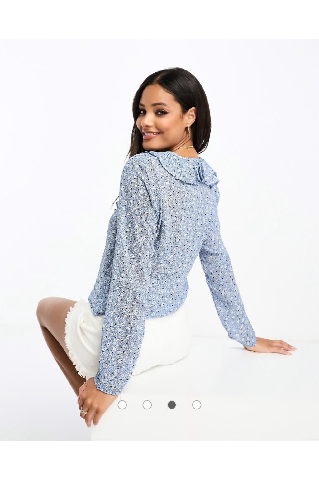 Abercrombie & Fitch – Modrá květinová volánková blůza