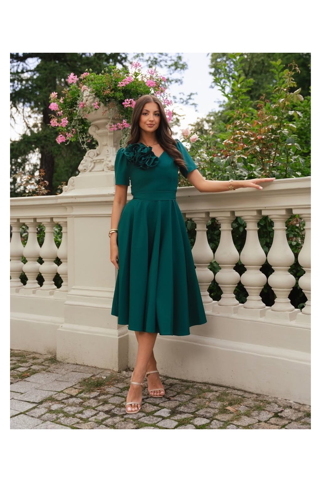 Společenské midi šaty značky Elizabeth Collection model Rubi v zelené barvě