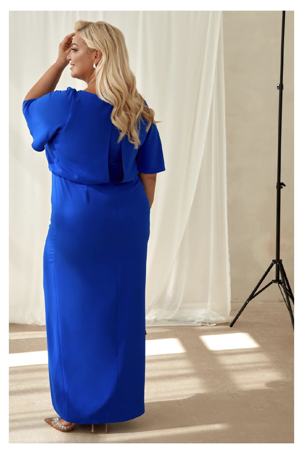 - Dlouhé šaty s krátkým rukávem a decentním výstřihem
