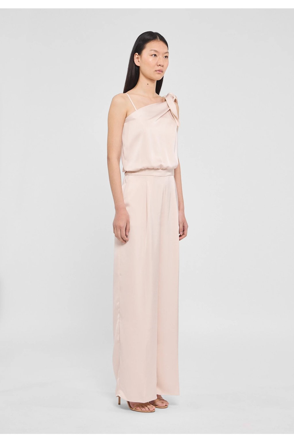 Tento elegantní overal vás zaujme svým minimalistickým a vzdušným designem, ideálním pro slavnostní příležitosti i večerní akce. Doplňte minimalistické sandály na podpatku a jemný „clutch“ kabelku – vytváříte sofistikovaný look pro formální pořádky i sváteční večery.