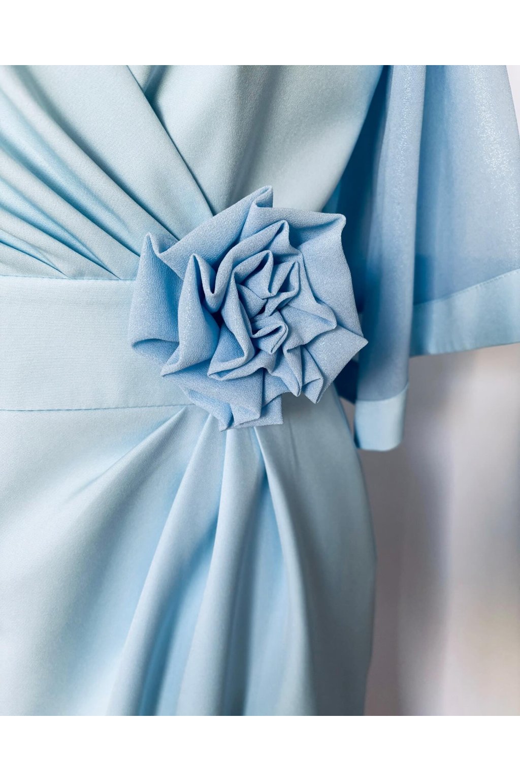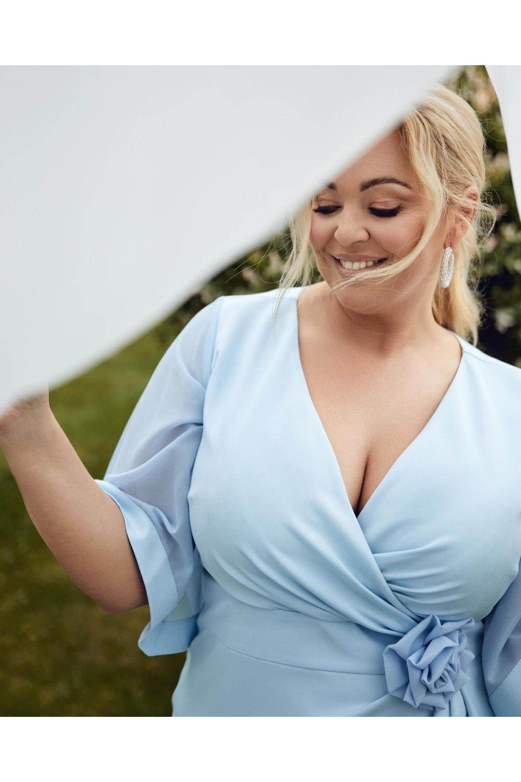 - Šaty mají lichotivý překládaný výstřih do V, který jemně zvýrazňuje dekolt.