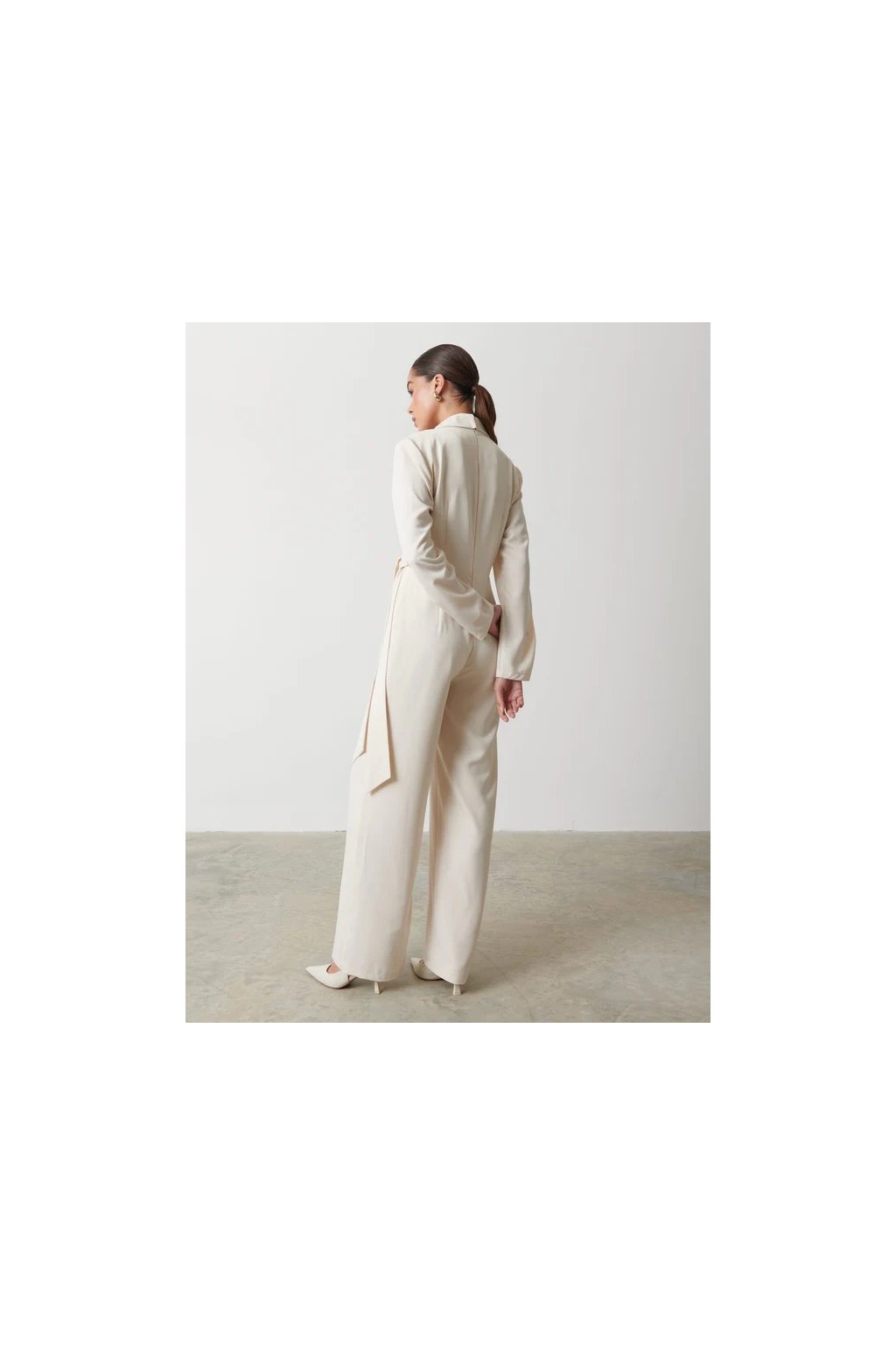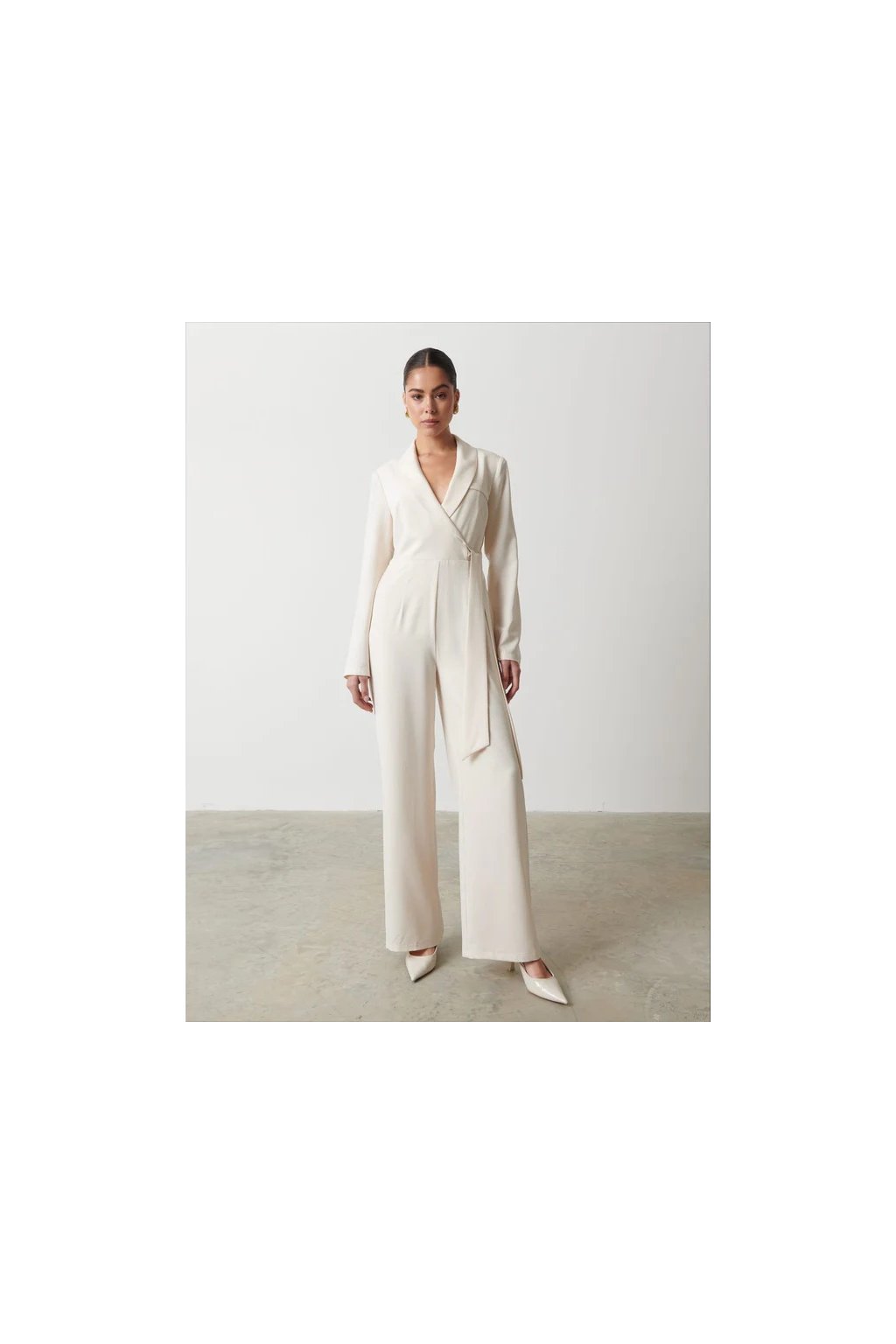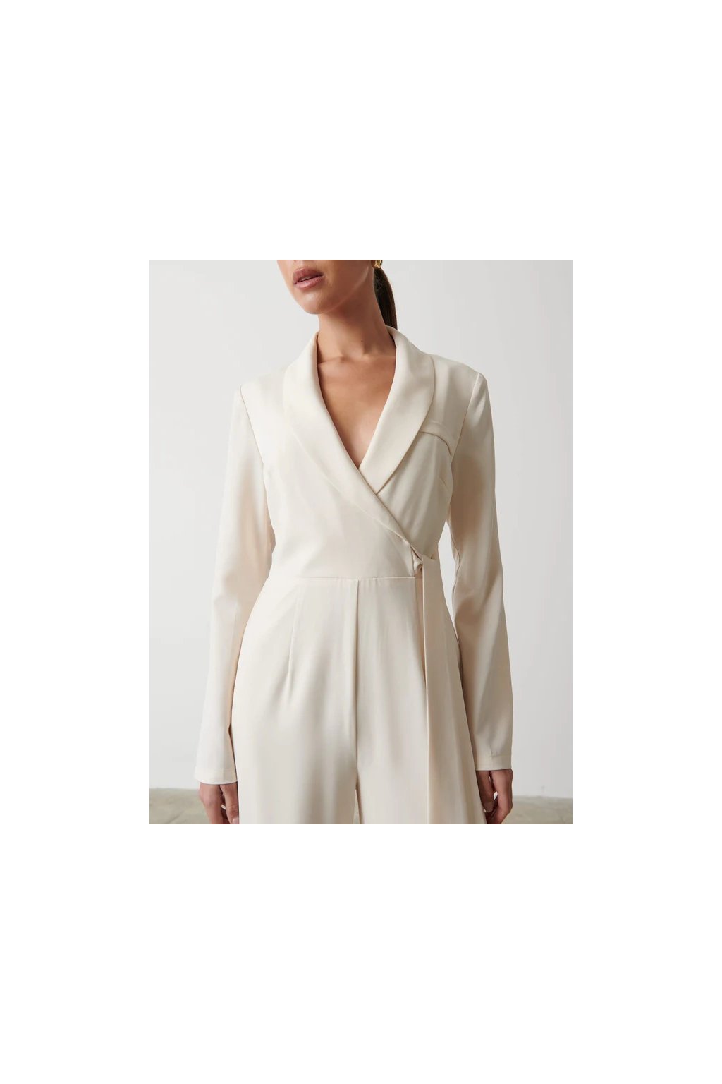 Overal Vienna od značky Pretty Lavish je definicí moderní elegance. Jeho čistý krémový odstín, elegantní zavinovací střih a sofistikovaný límec s hlubokým výstřihem do „V“ tvoří nadčasový kousek, který vynikne při každé příležitosti – od formálního dne v práci po večerní události.