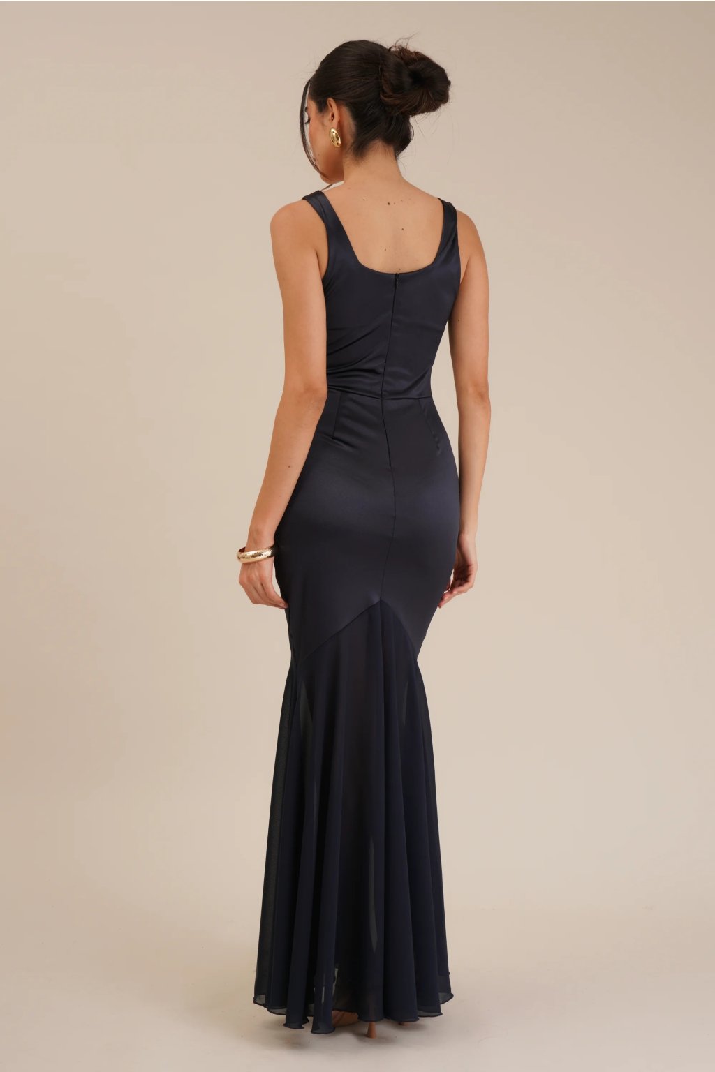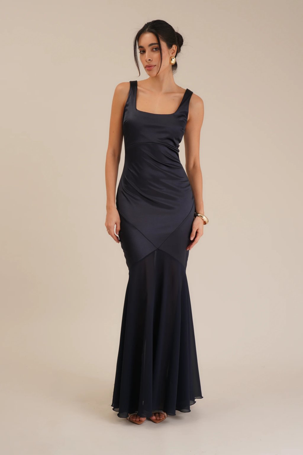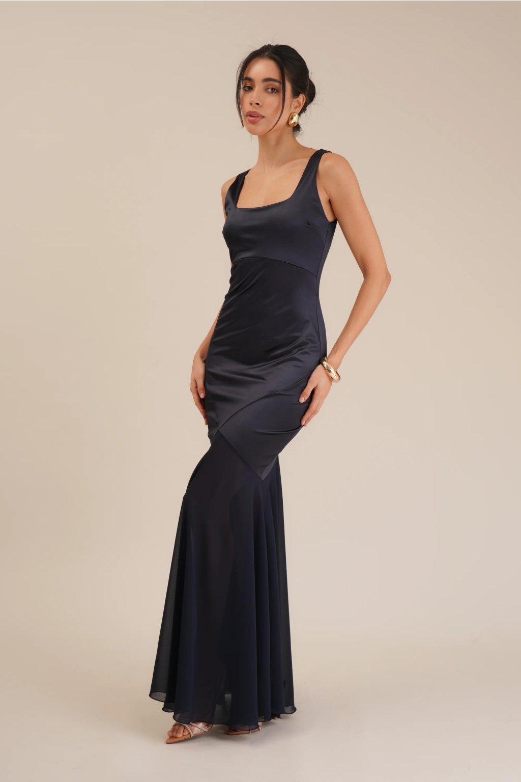 Koktejlové šaty WAL G. v nádherné tmavě modré barvě jsou ideální volbou pro každou elegantní příležitost. S jejich rafinovaným střihem, který zdůrazňuje postavu, a jemnými detaily, jako jsou široká ramínka a hluboký výstřih na zádech, se stanete středem pozornosti. Sukně se postupně rozšiřuje do jemného áčkového tvaru, což dodává šatům pohyb a lehkost.