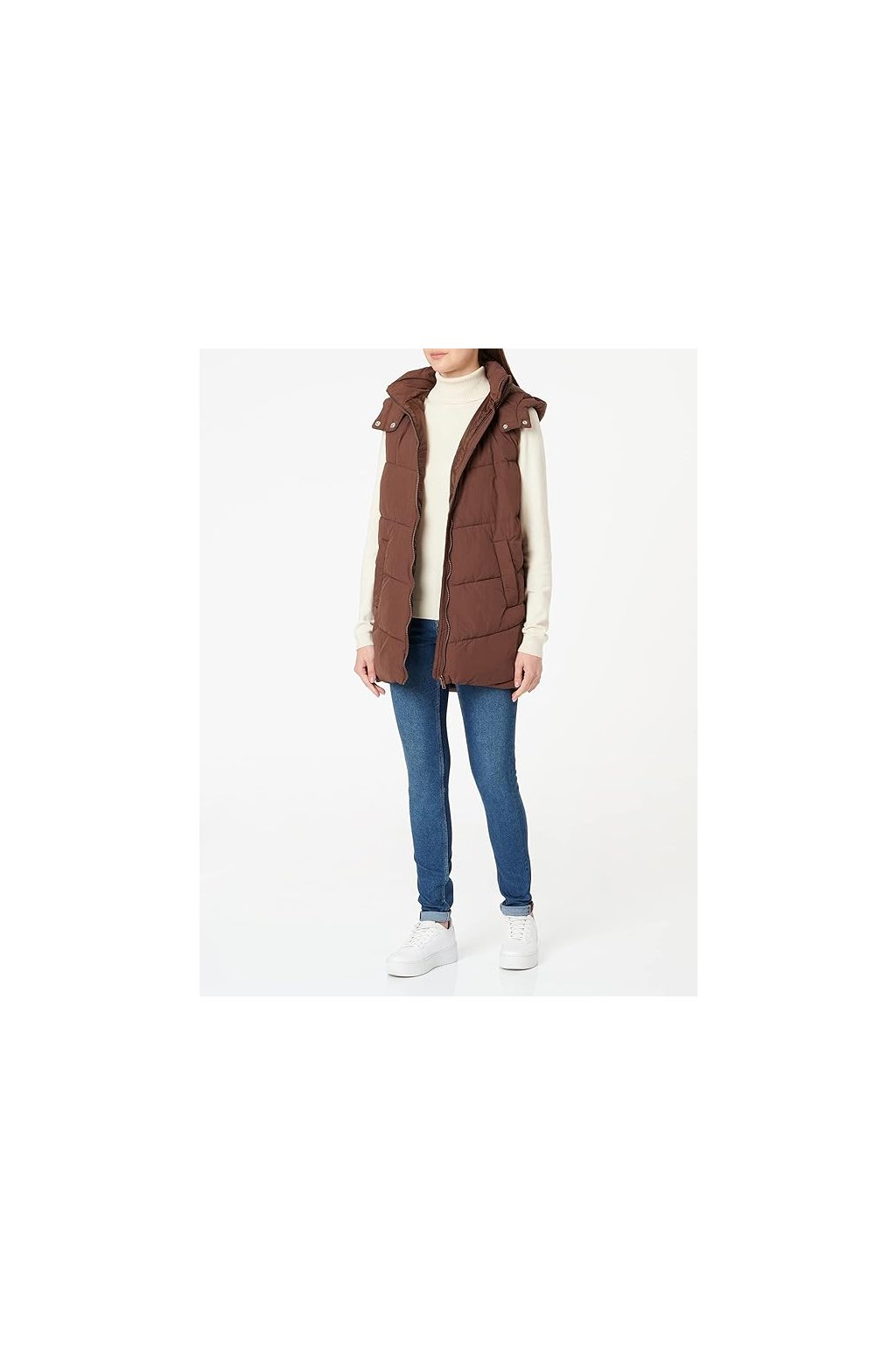 Dámská prošívaná vesta PIECES – Chicory Coffee