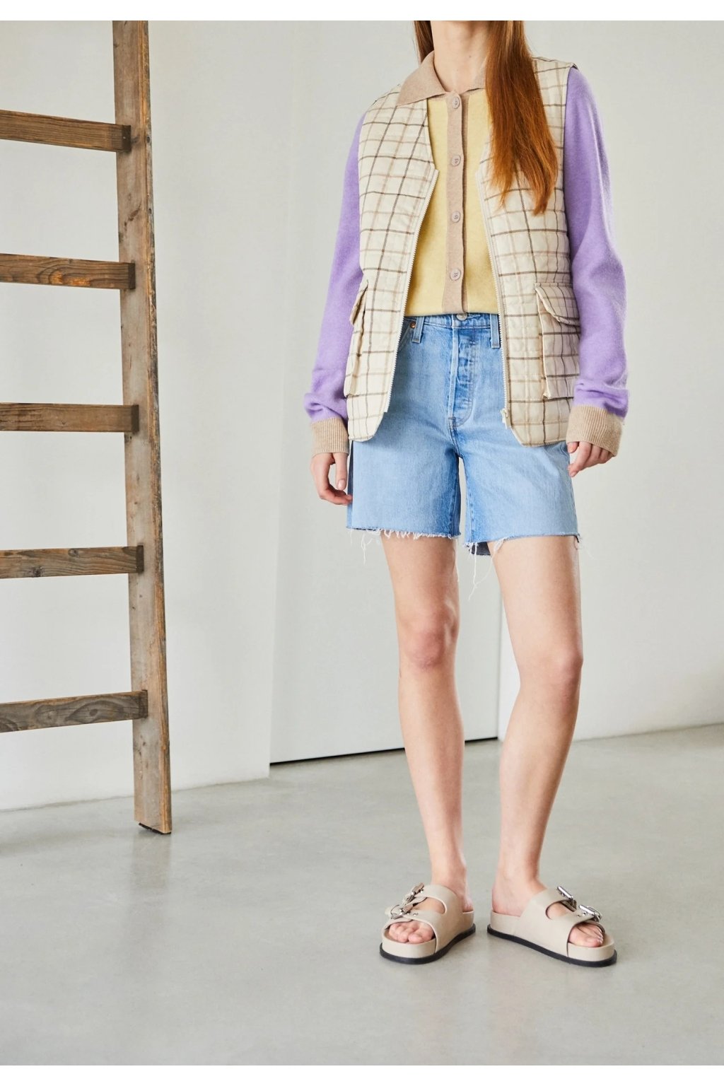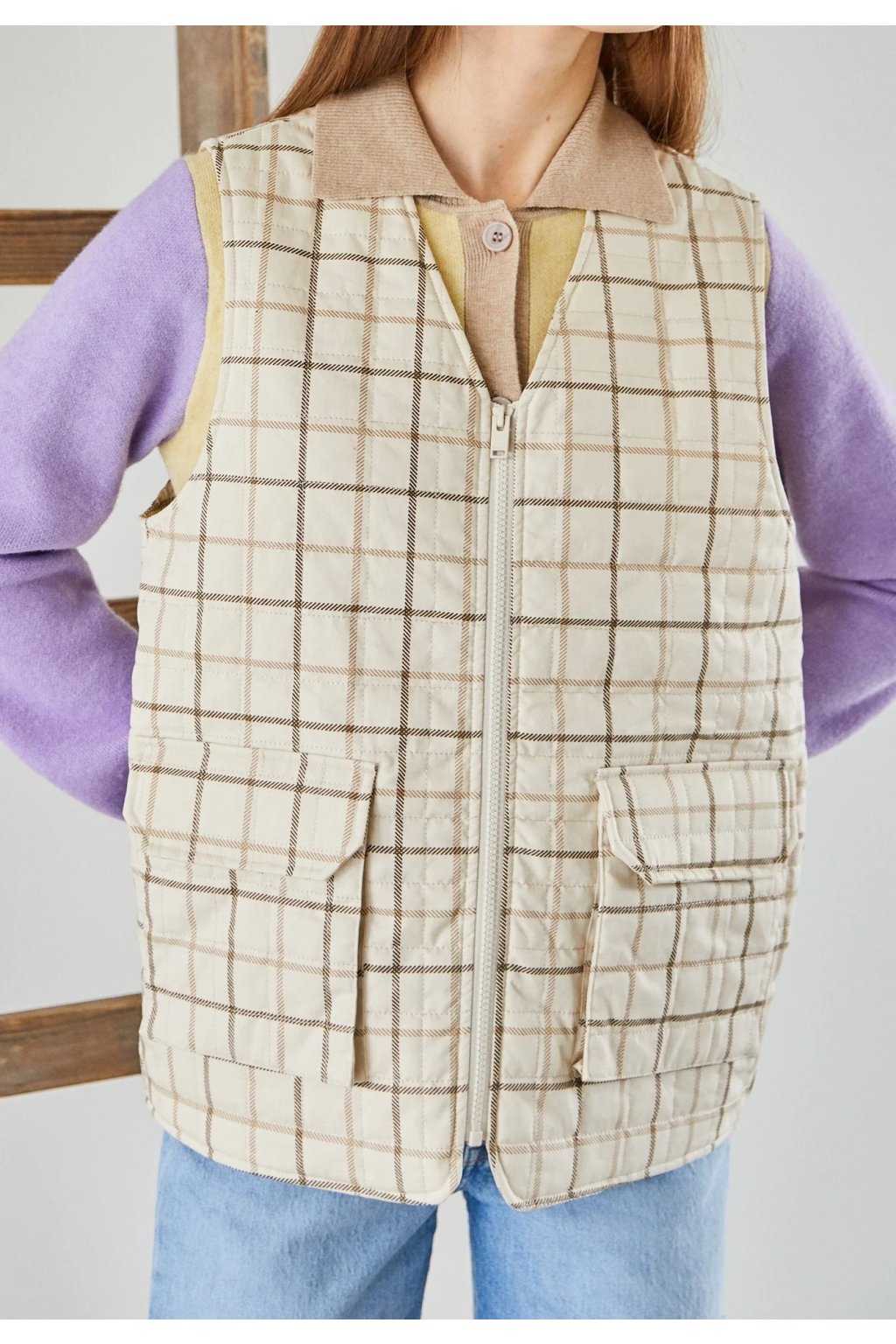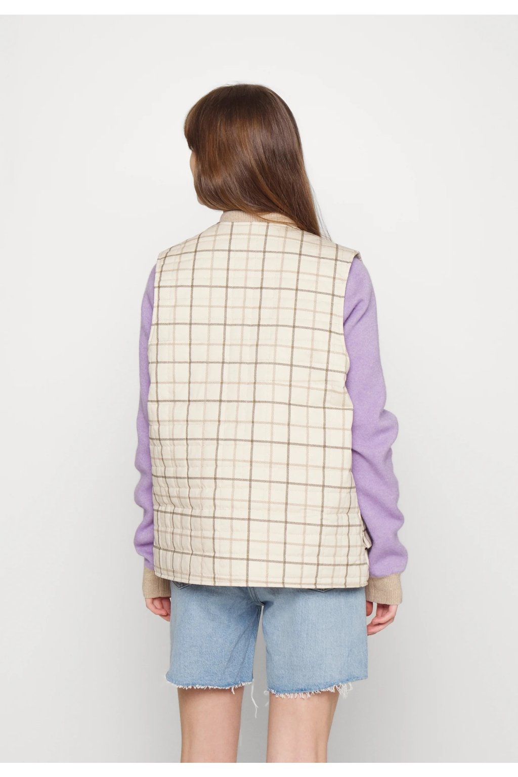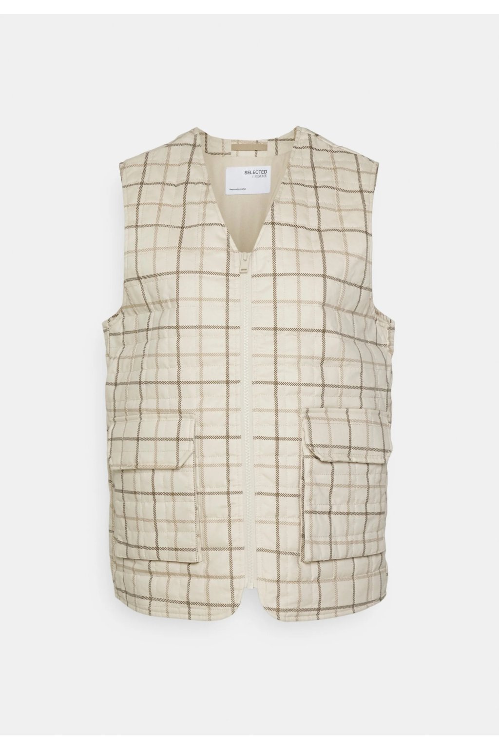 Stylová a praktická dámská vesta Selected Femme v elegantní barvě sand je ideální volbou pro přechodné období i chladnější dny. Vesta je vyrobena z lehkého, prošívaného materiálu s decentním kostkovaným vzorem, který dodává celkovému vzhledu moderní a sofistikovaný nádech.