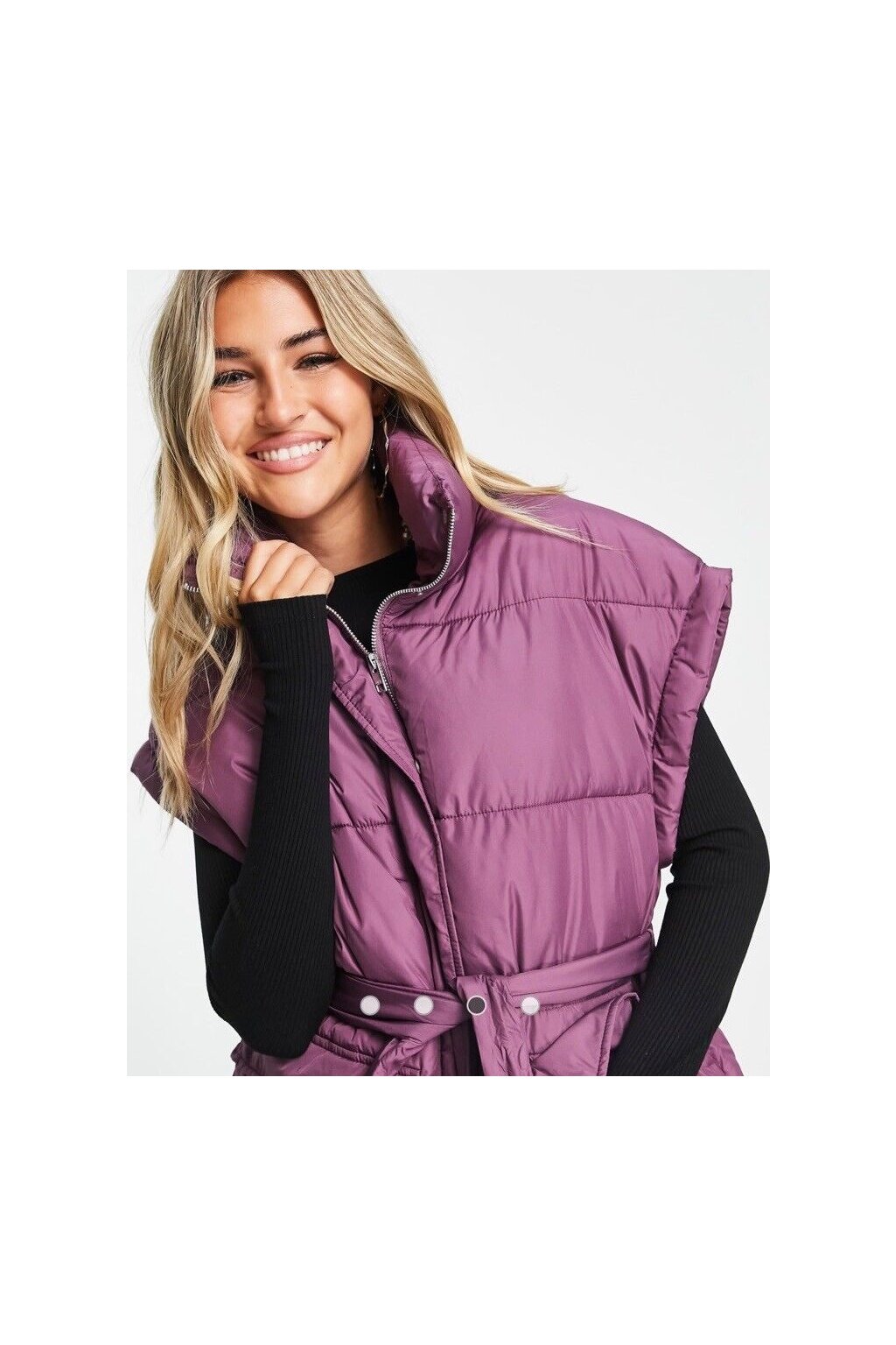 Fialová puffer vesta JJXX je stylový a zároveň praktický kousek do chladnějších dnů. Má vyšší límec, zavazování v pase a dvě přední kapsy. Prošívaný design dodává vestě moderní vzhled a díky volnějšímu střihu se pohodlně nosí přes svetr nebo mikinu. Skvěle se hodí na podzim i mírnou zimu.