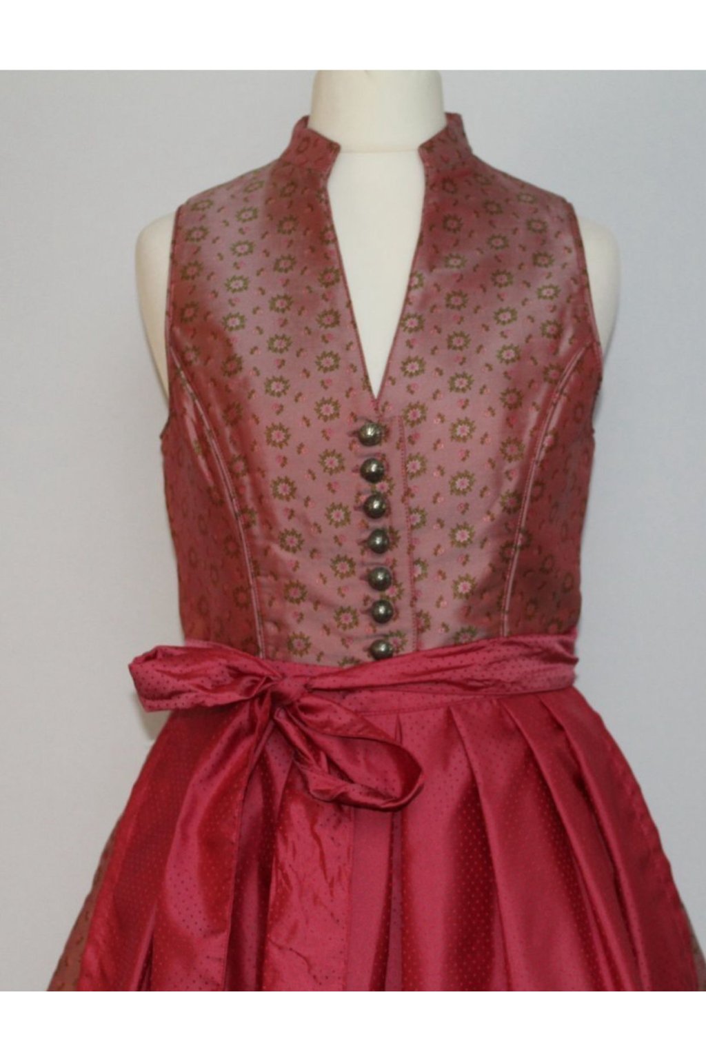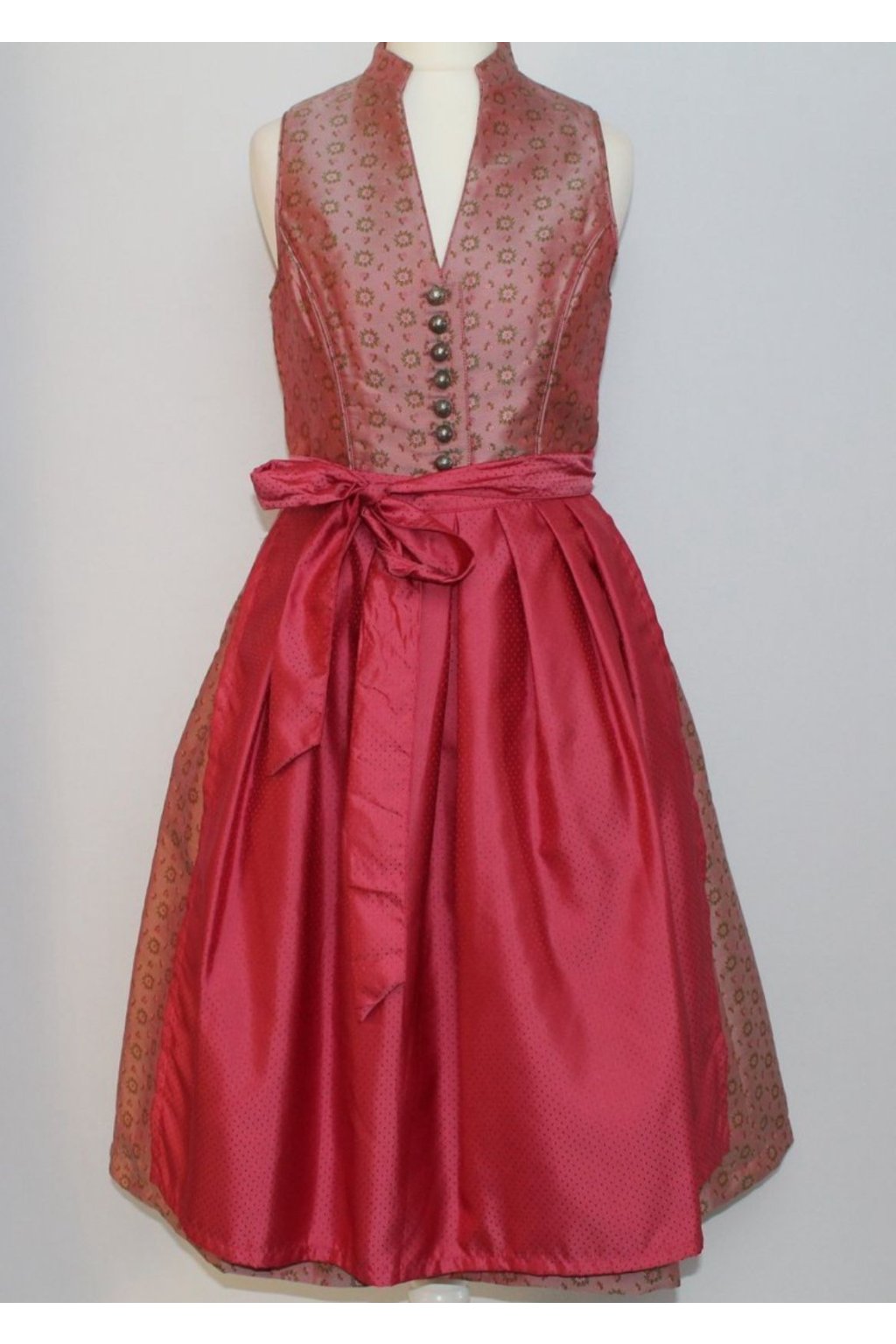 Tradiční elegance v moderním pojetí – dirndl Midi Stockerpoint zaujme na první pohled svou sofistikovanou kombinací tlumené růžové s květinovým vzorem a sytě červené zástěry. Vyrobený z jemně lesklého materiálu, krásně padne na postavu a díky elegantnímu střihu bez rukávů a s decentním stojáčkem působí velmi žensky a ušlechtile.
