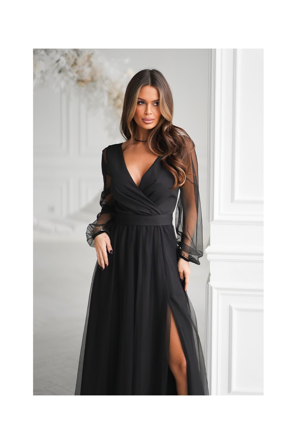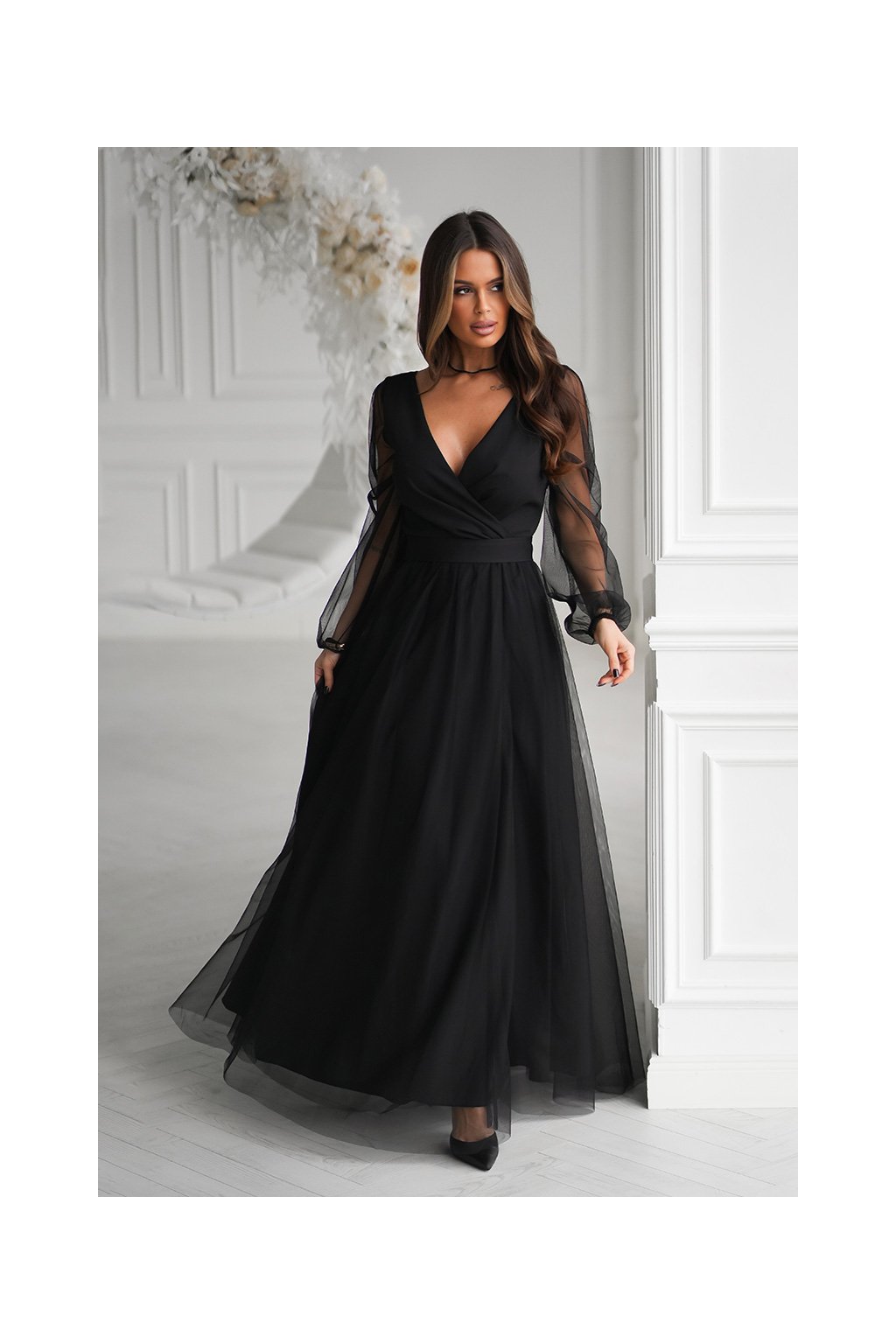 Společenské šaty s rukávem model Elara v černé barvě