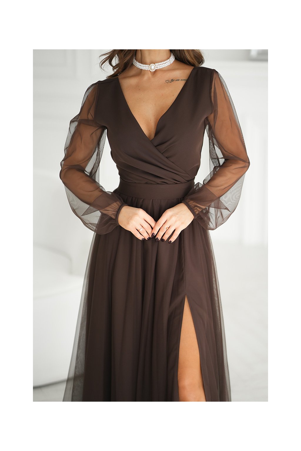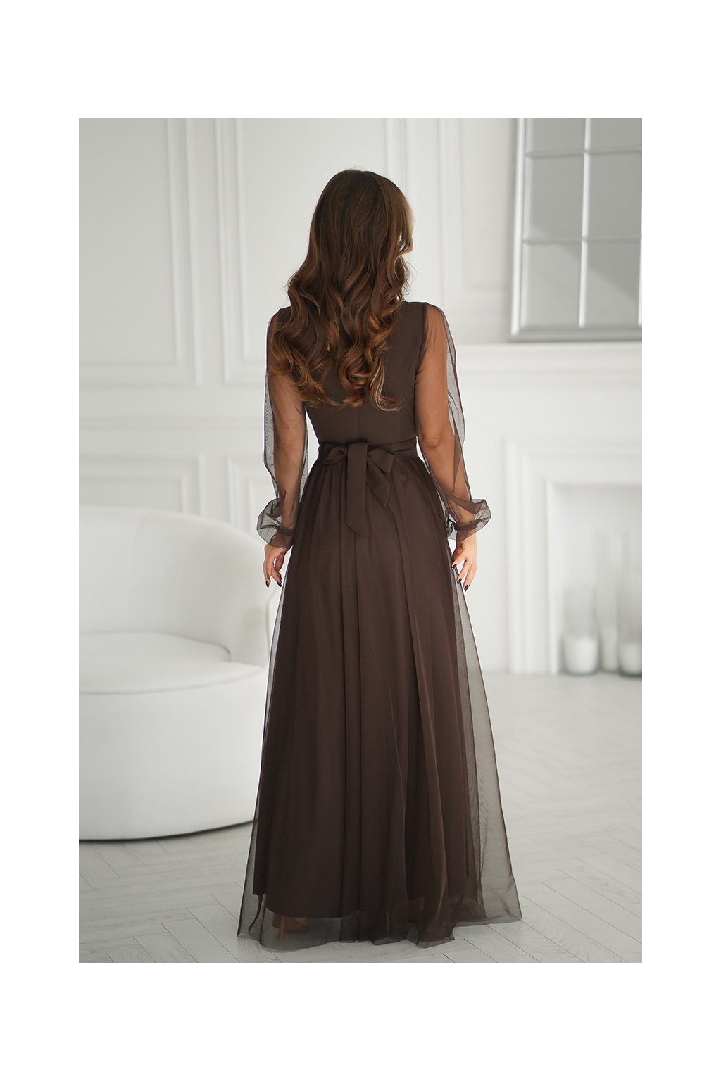 Společenské šaty s rukávem model Elara v čokoládové barvě