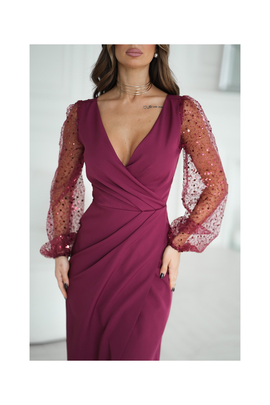 Společenské šaty s rukávem model Laura v barvě burgundy