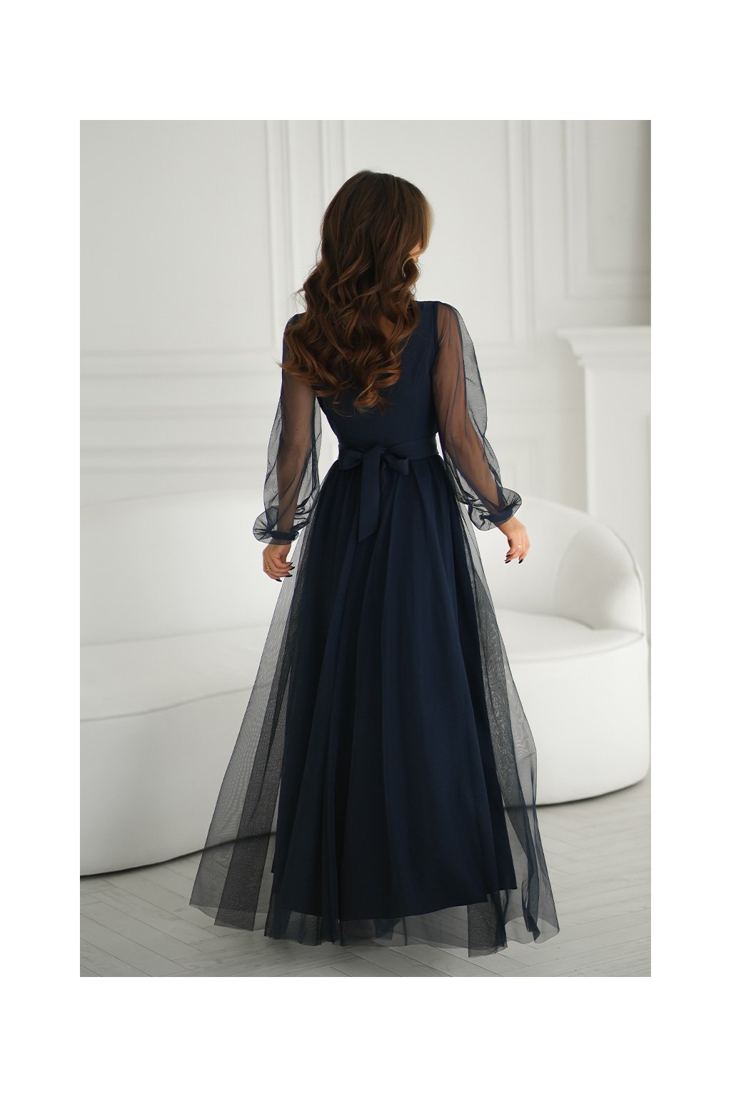 Společenské šaty s rukávem model Elara v tmavě modré barvě
