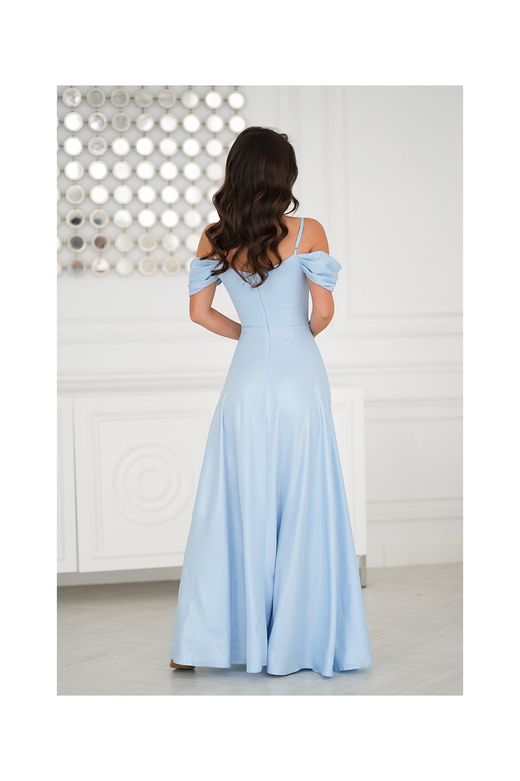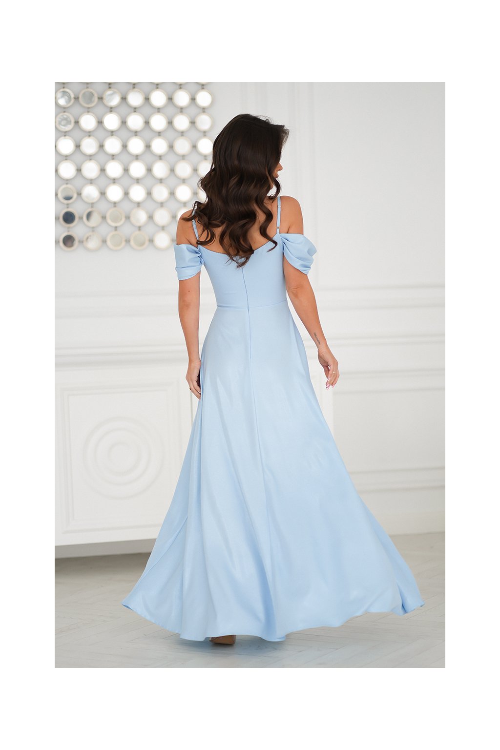 Elegantní dlouhé šaty s jemně splývavým střihem působí velmi žensky a sofistikovaně. Řasený živůtek s efektem vodopádu krásně zvýrazňuje dekolt, zatímco rozparek na sukni dodává modelu lehkost a smyslnost. Ideální volba pro plesy, svatby i slavnostní večerní události.