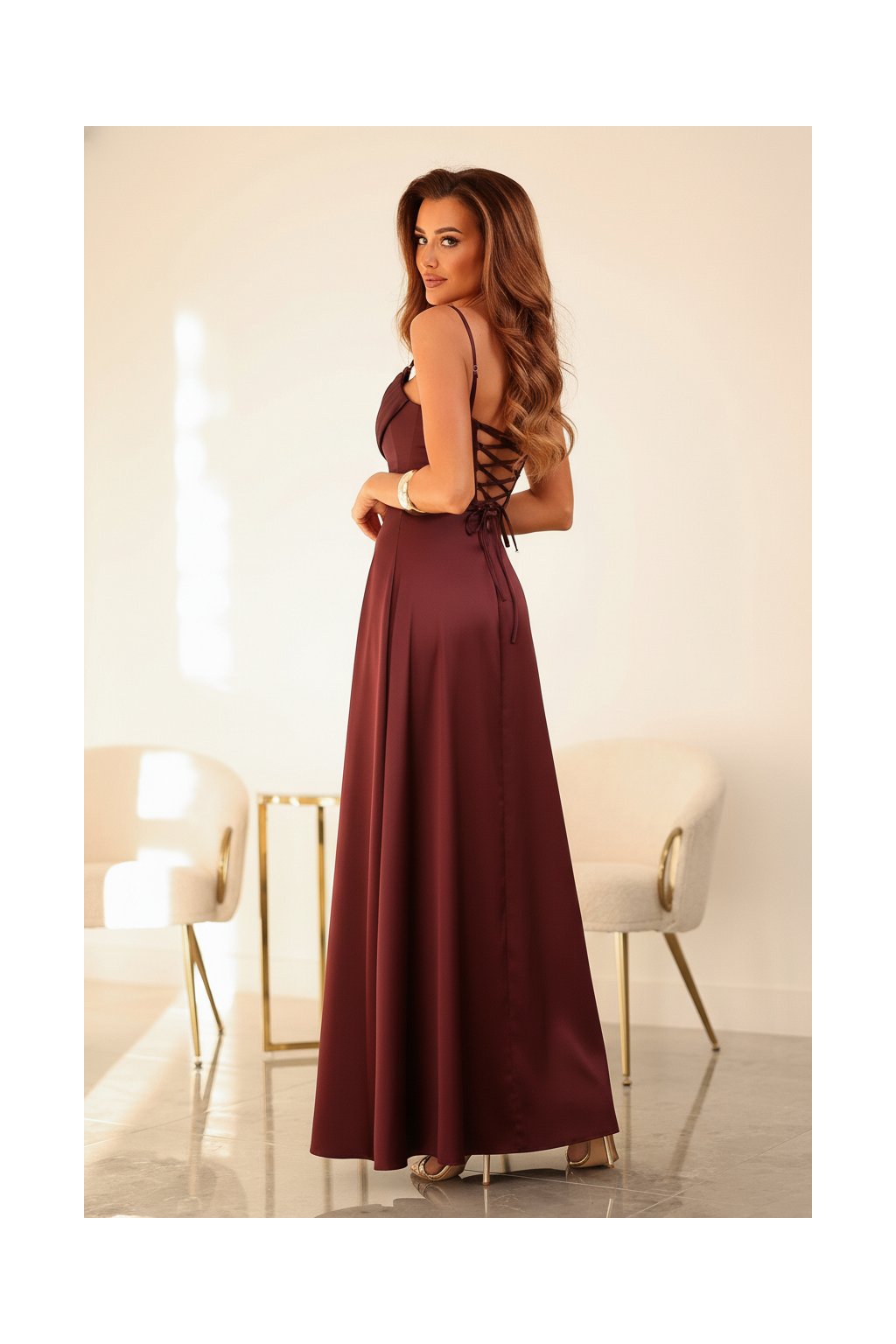 Dlouhé korzetové šaty ROCHEL s mírně rozšiřující se sukní jsou ideální volbou na svatby, plesy a významné události. Korzet se zavazováním na zádech, efekt „vody“ vpředu a možnost připnutí ramínek dodávají tomuto modelu eleganci a perfektní střih. K dispozici v nejmódnějších barvách sezóny a ve velikostech 32–42.