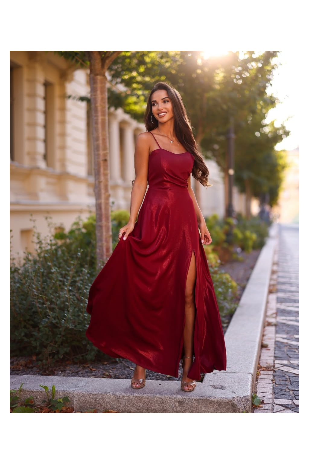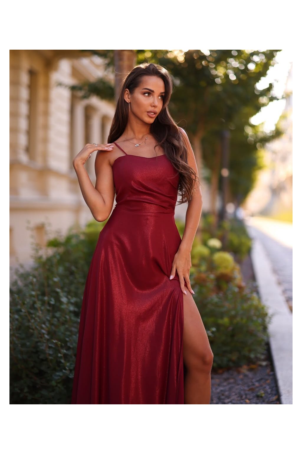 - Rozparek a tenká ramínka podtrhují ženskost a jemnost modelu.