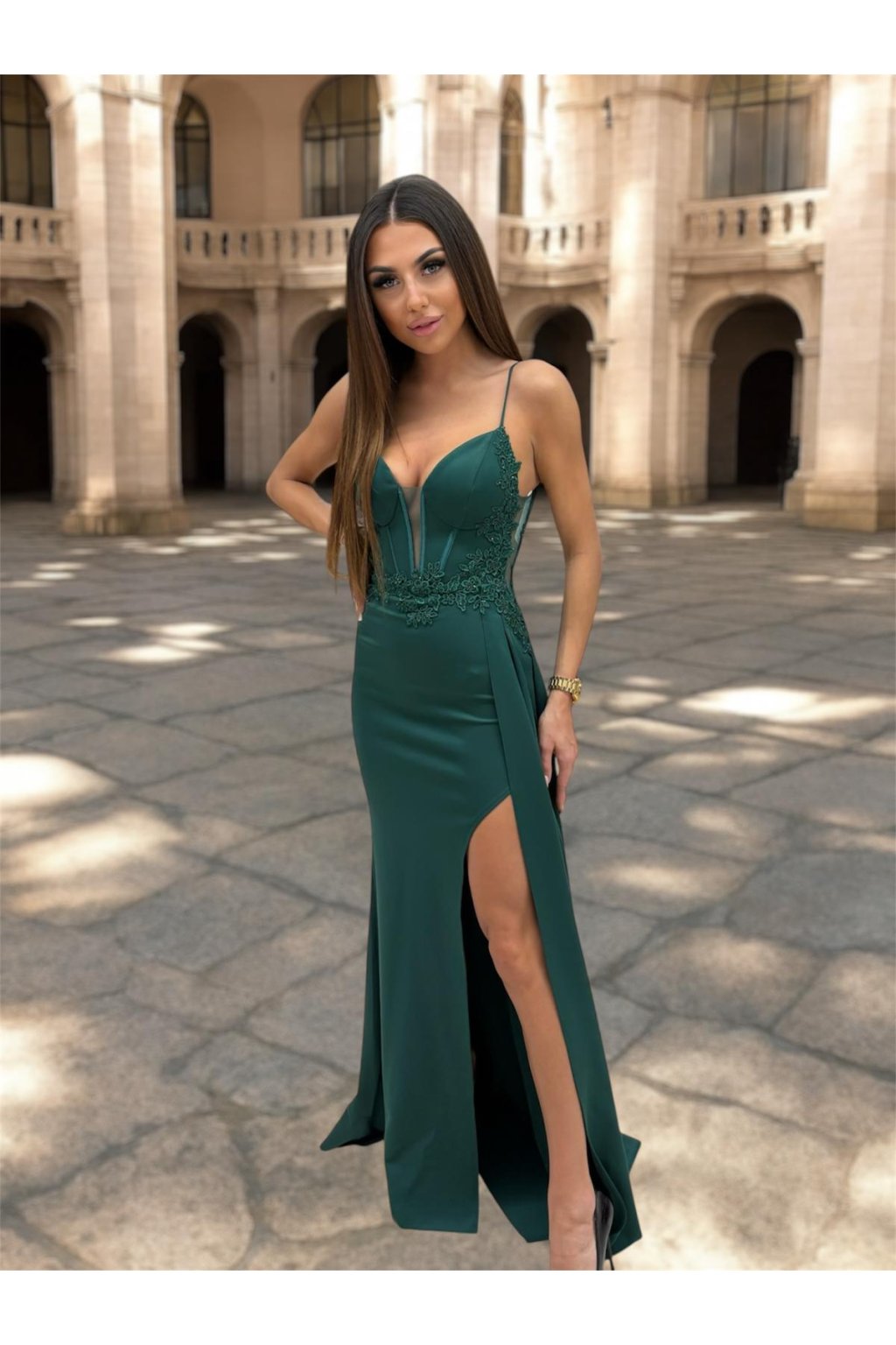 Společenské maxi šaty značky Pretty Women model Monopolis v lahvově zelené barvě