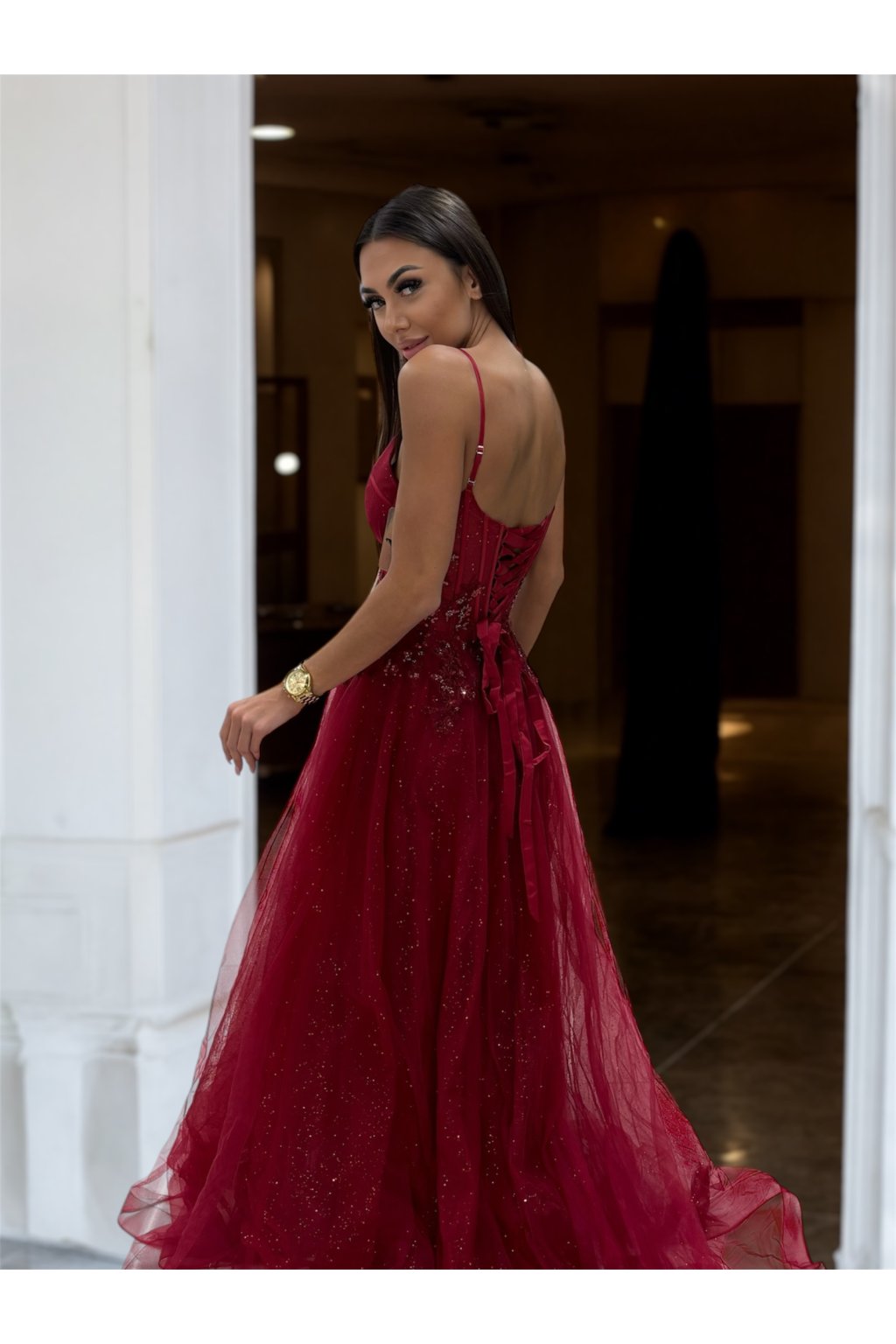 Maxi třpytivé šaty značky Pretty Women model Paradise v bordo barvě