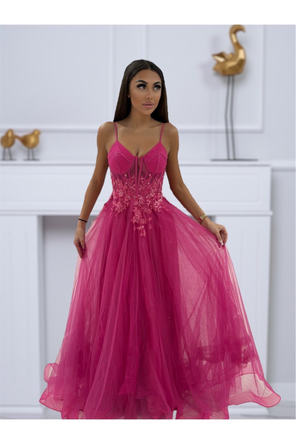 Maxi třpytivé šaty značky Pretty Women model Paradise ve fuchsia barvě