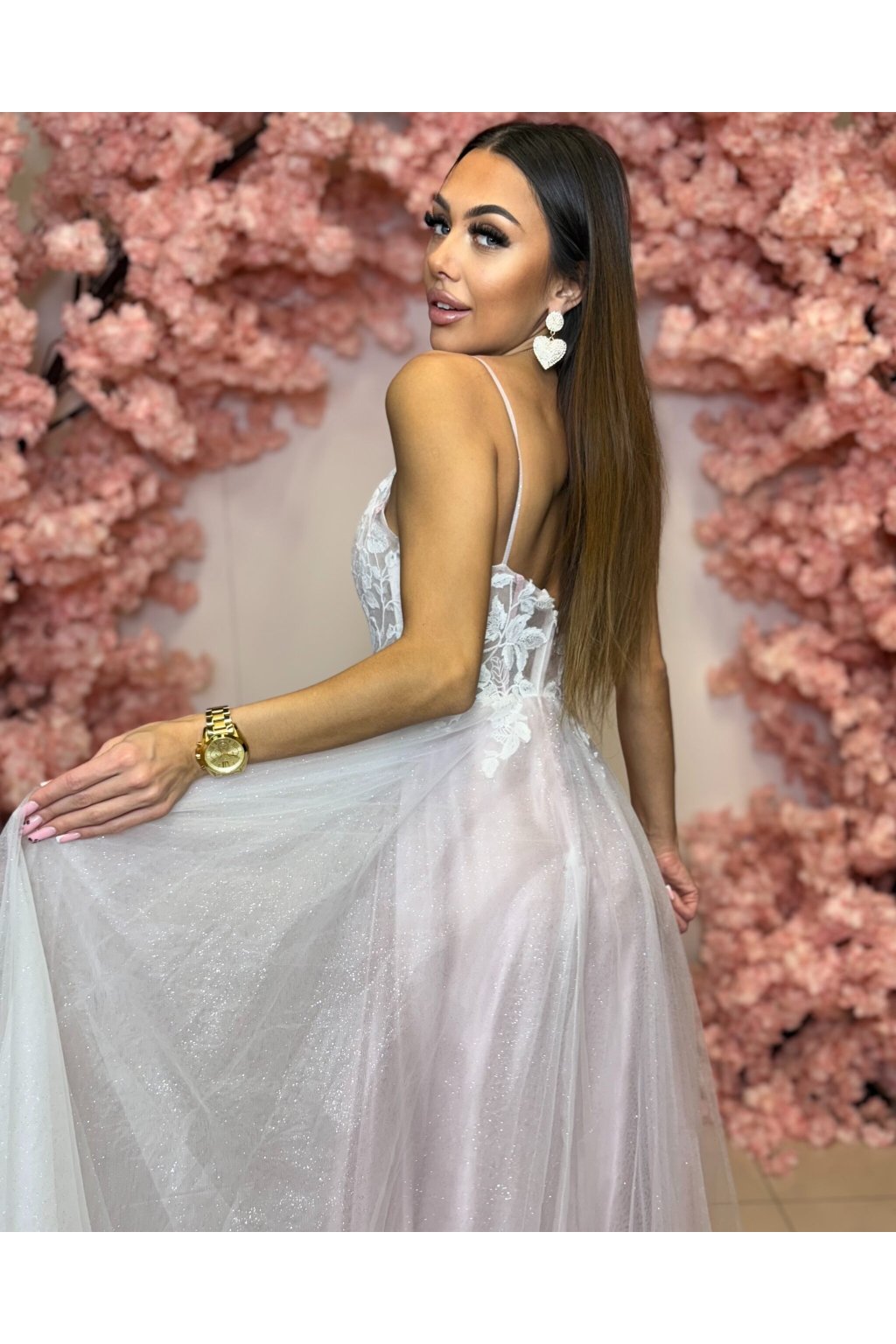 Maxi společenské šaty značky Pretty Women model Tiramisu pudrovo-bílé provedení