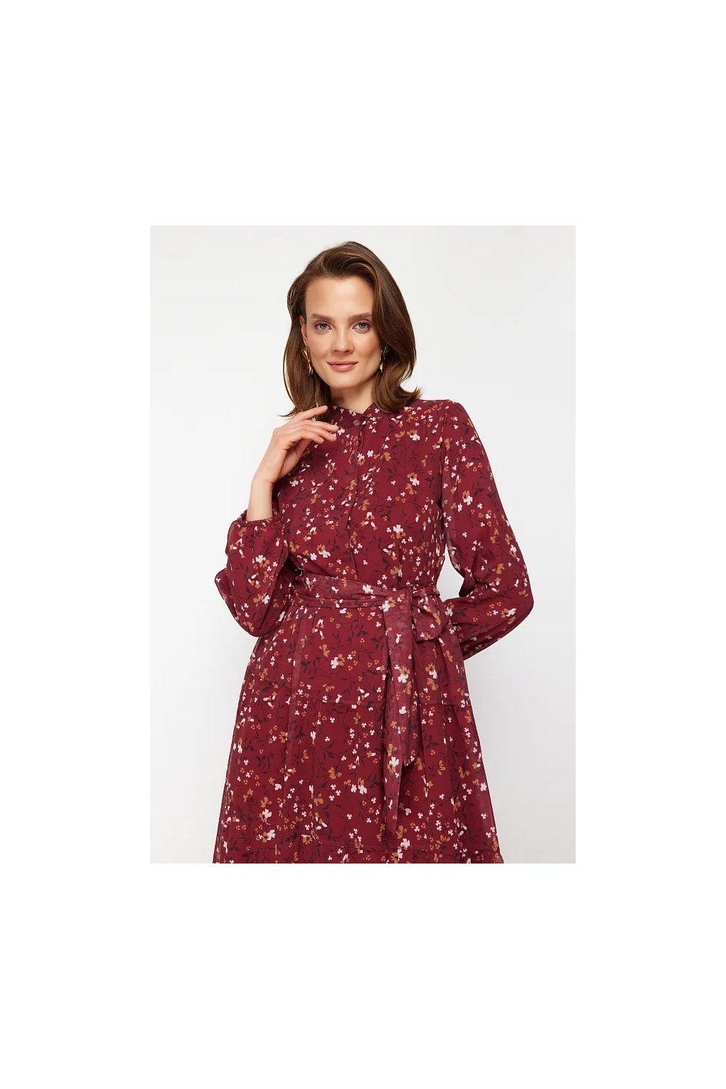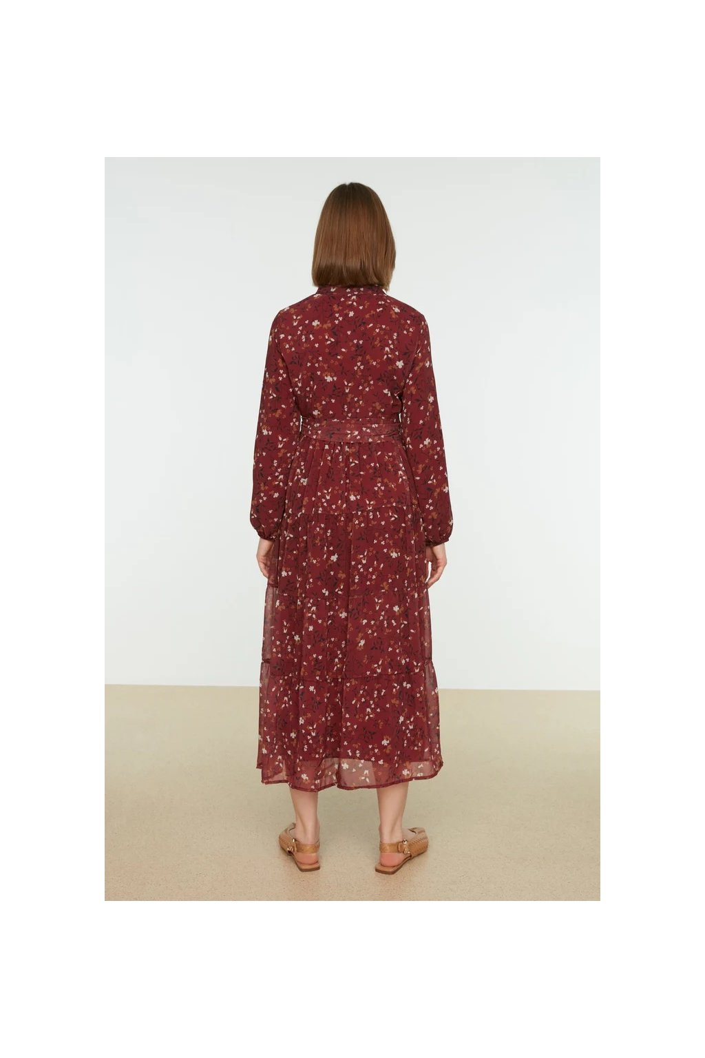 Maxi Šaty Trendyol – Vínové s Květinovým Vzorem