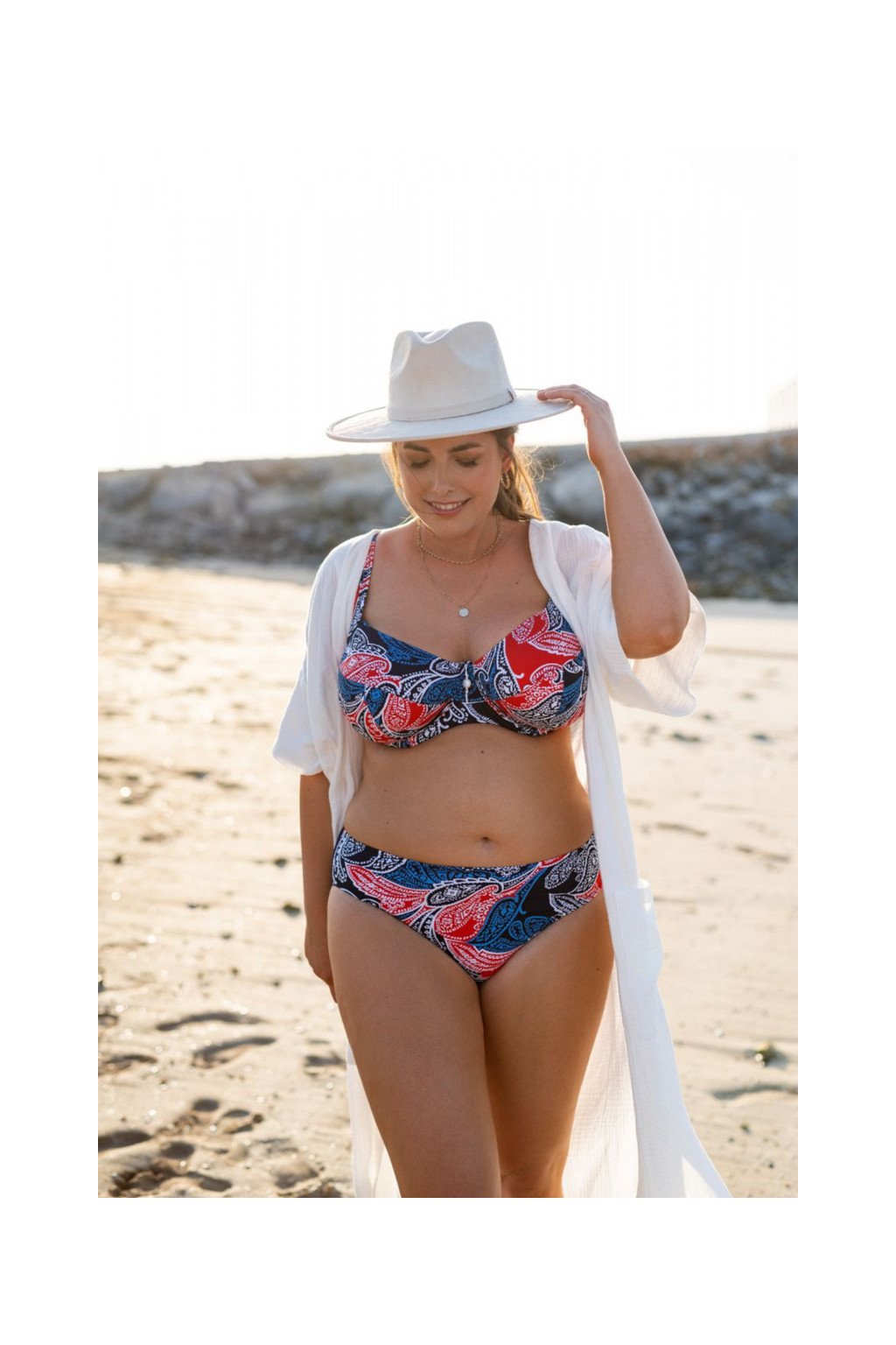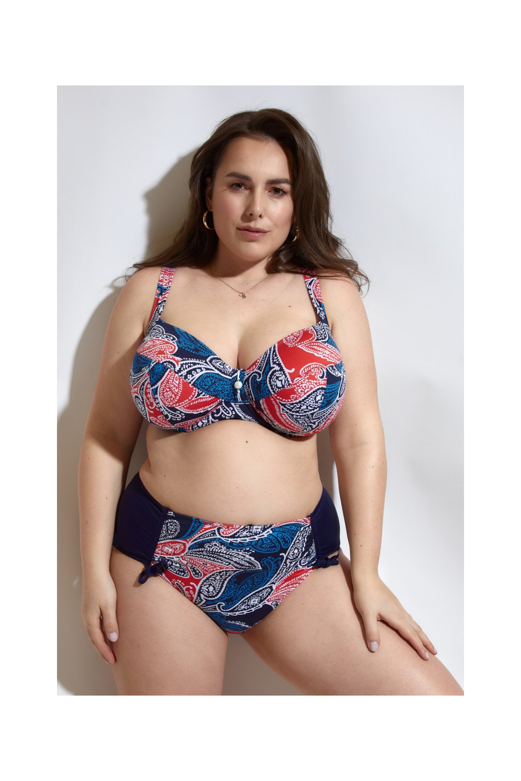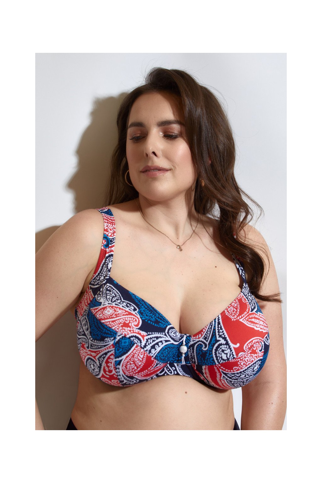 Kolekce Paloma 2023 vám představuje inovativní nevyztužené plavky pro velká prsa. Díky kosticím a laminovaným košům vám plavková podprsenka poskytne opravdovou podporu a pohodlí. Krásný modro-červený vzor vás jistě nadchne. Široká ramínka plavek nelze odepnout.