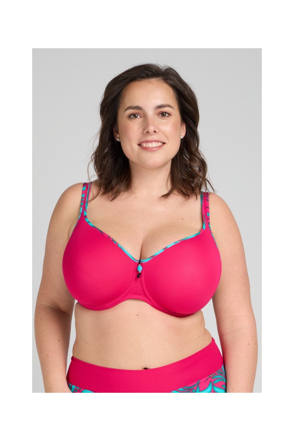 Plavková podprsenka Triola vás uchvátí tropickým potiskem ve fuchsiové a tyrkysové barvě. Pořiďte si stylové plavky z nové kolekce, ve kterých se budete cítit skvěle.