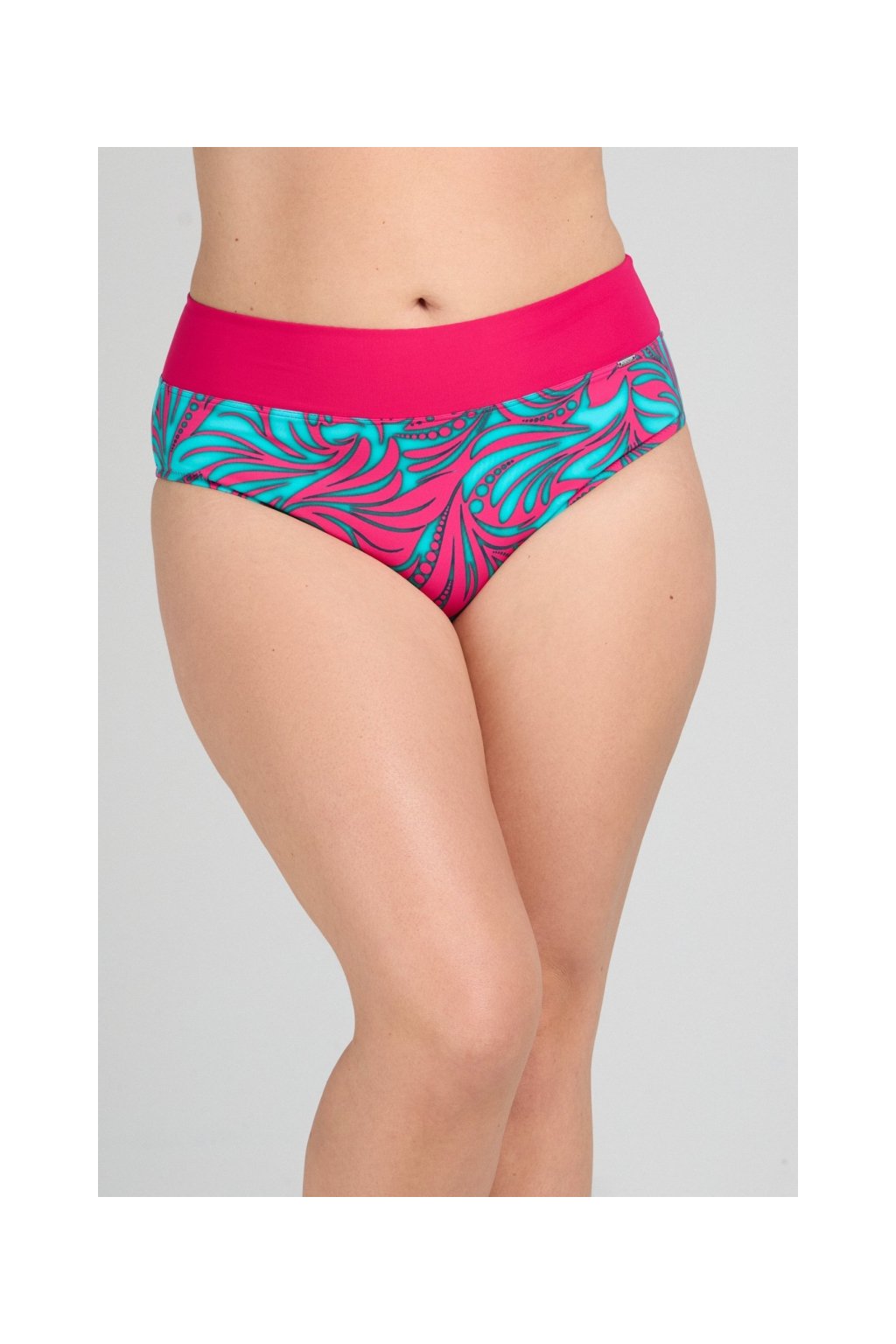 Dámské plavkové kalhotky s nastavitelnou výškou pasu zajišťují skvělou oporu po celý den. Horní lem plavek lze ohrnout a vytvořit tak klasické kalhotky. Perfektně se přizpůsobí vašim křivkám a dodají vám pocit sebevědomí. Kalhotky zaujmou zářivou fuchsiovou barvou doplněnou o tropický tyrkysový odstín. Ať už se chystáte na pláž nebo do bazénu, plavky Triola budou vaším ideálním společníkem.