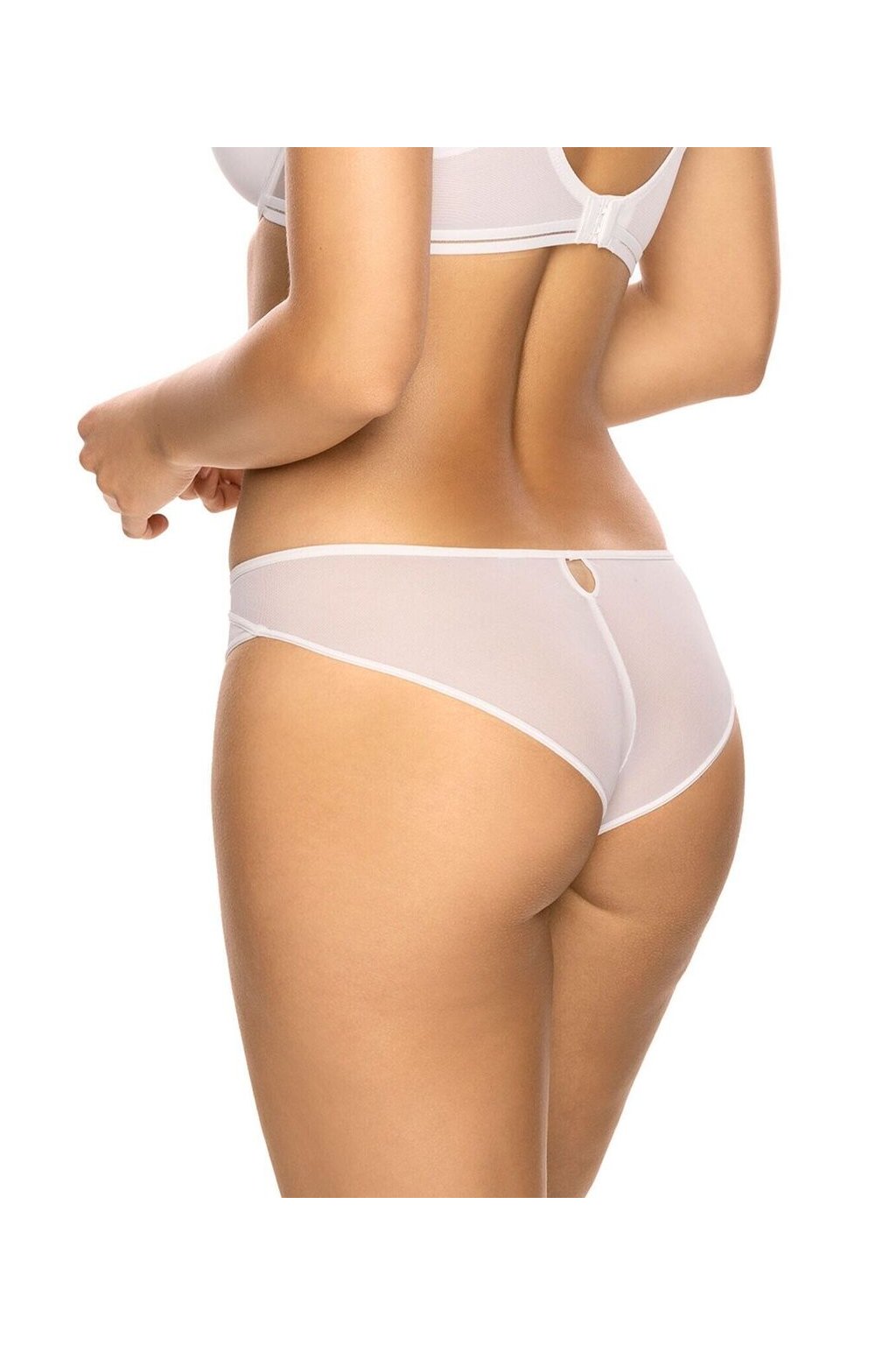 Sexy série s průhlednými síťovanými vsadkami. Transparentní celkový vzhled dokresluje mašle, rovněž v průhledném vzhledu, s ozdobným kulatým kovovým doplňkem, stejně jako řemínky na šperky s průhledným středem a elastické pásky s průhlednými okraji