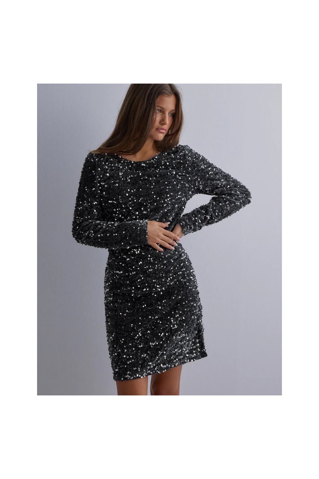 Oslňte při každé příležitosti v těchto černých flitrovaných minišatech! Tyto šaty s dlouhým rukávem a přiléhavým střihem jsou ideální volbou pro večírky, oslavy i sváteční sezónu. Celoplošné flitrové zdobení dodává modelu luxusní lesk a zajistí, že nezůstanete bez povšimnutí. Díky elastickému materiálu krásně přilnou k postavě a zvýrazní ženské křivky.