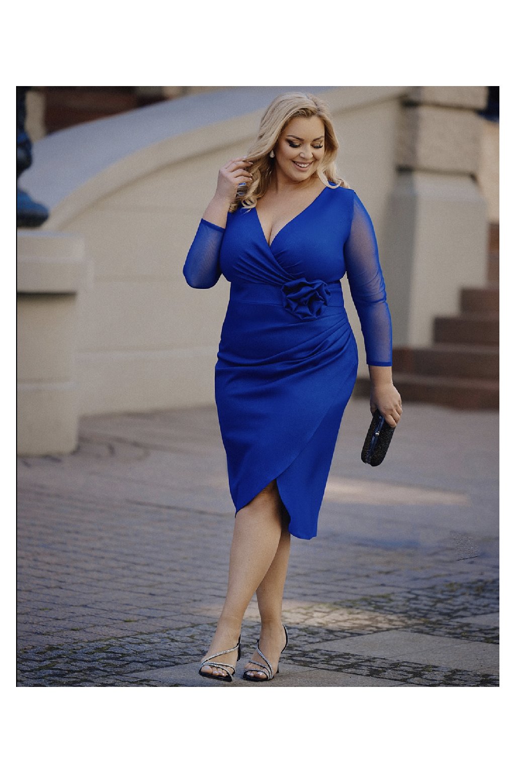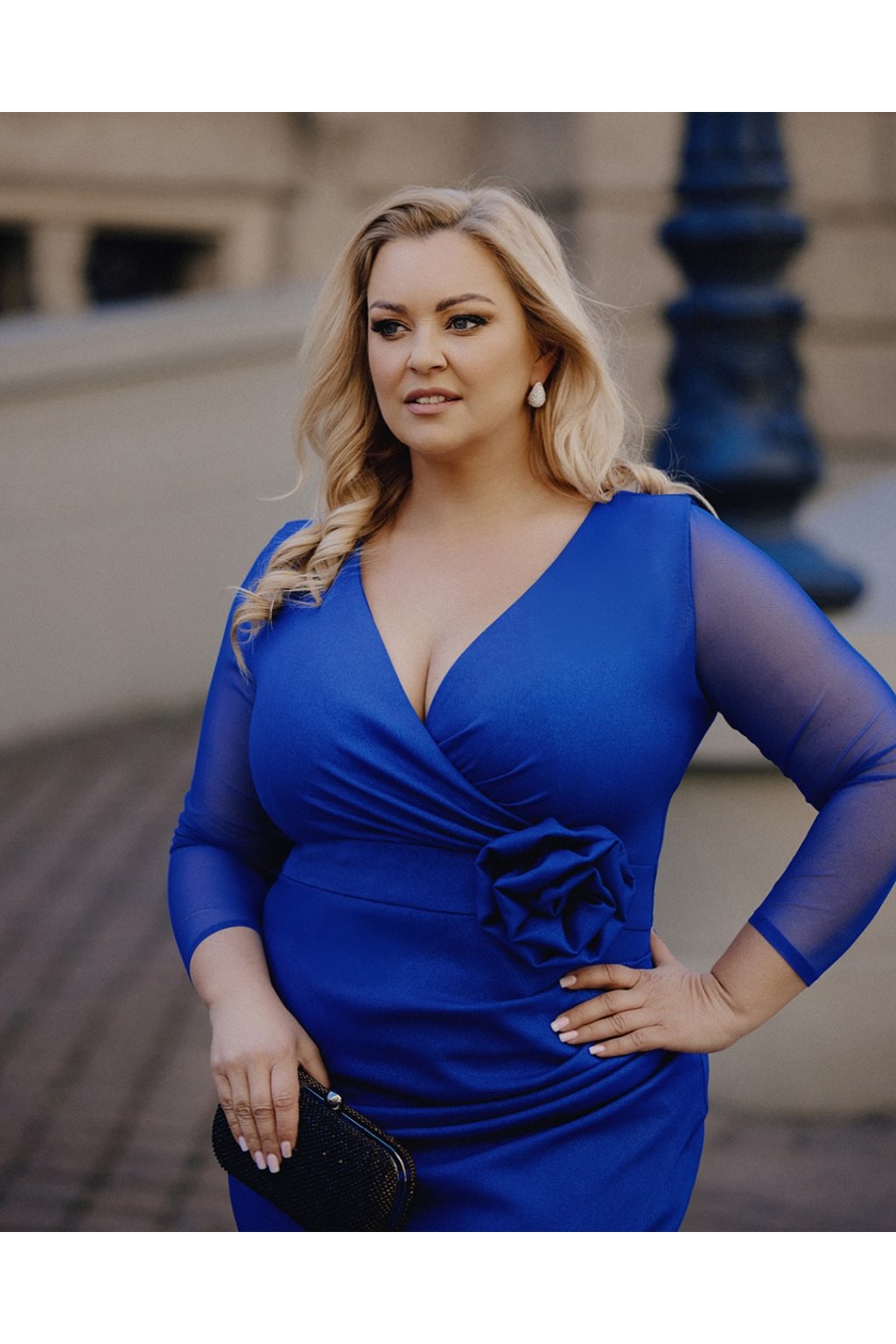 - Šaty jsou ozdobeny stylovou růží v pase, která dodává modelu jedinečný detail a zároveň opticky zeštíhluje postavu.