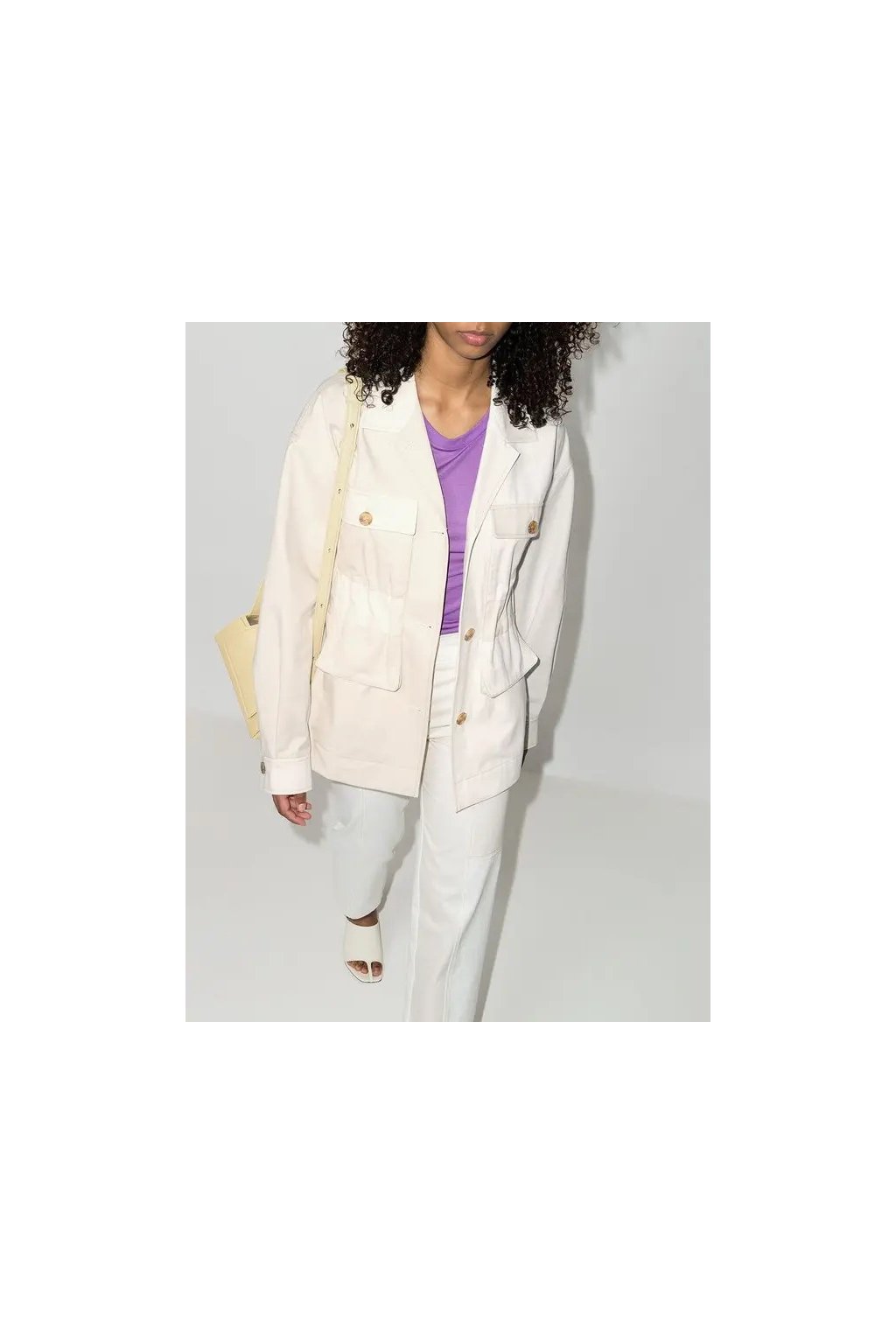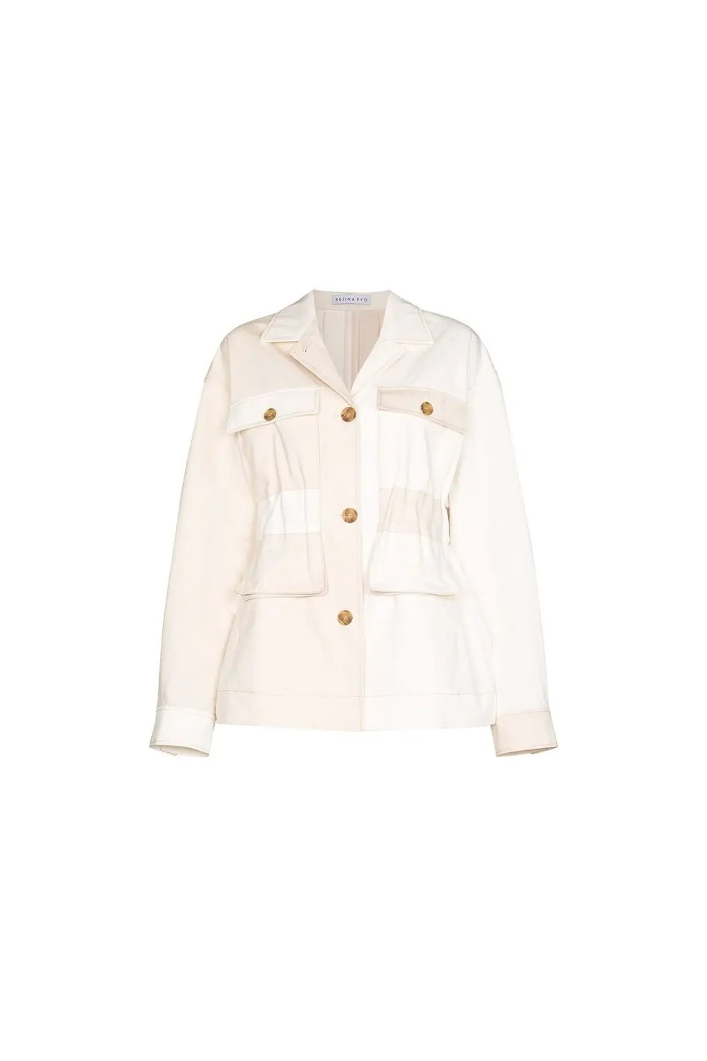 Stylová a elegantní bunda Rejina Pyo Keiko v patchworkovém designu z kvalitní bavlny v odstínu ecru je ideální volbou pro moderní ženy, které chtějí zaujmout minimalistickým, ale originálním vzhledem.