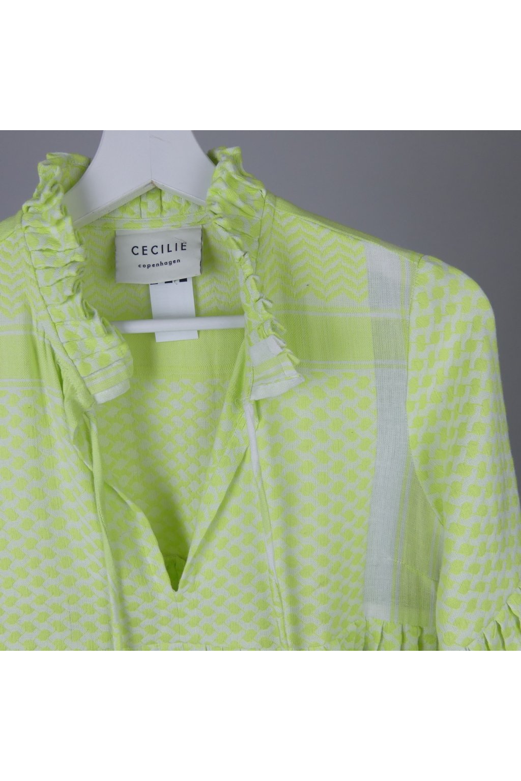 Přidejte do svého šatníku svěží nádech s těmito volnými šaty od značky CECILIE COPENHAGEN. Vyrobené z lehkého a příjemného materiálu, který zajišťuje maximální pohodlí po celý den. Stylové šaty v jemně zeleno-bílém vzoru kombinují moderní design s nádechem bohémské elegance.