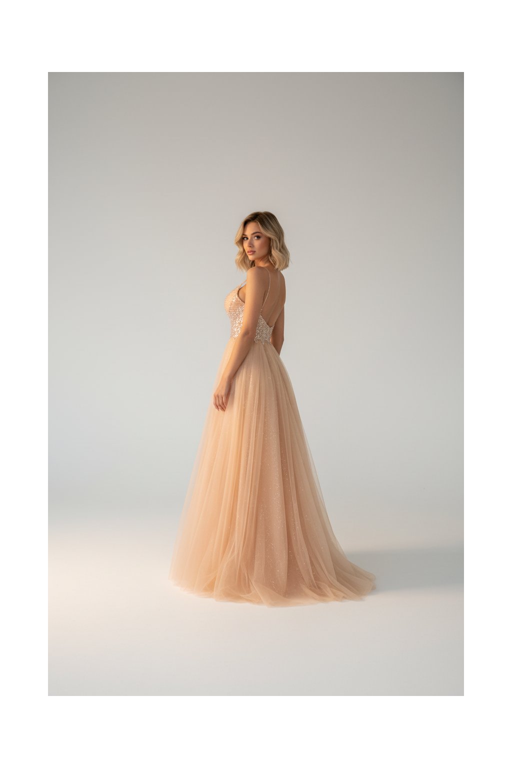 Šaty Emily ve stříbrné barvě je elegantní a nadčasový kousek, který se skvěle hodí pro různé příležitosti.