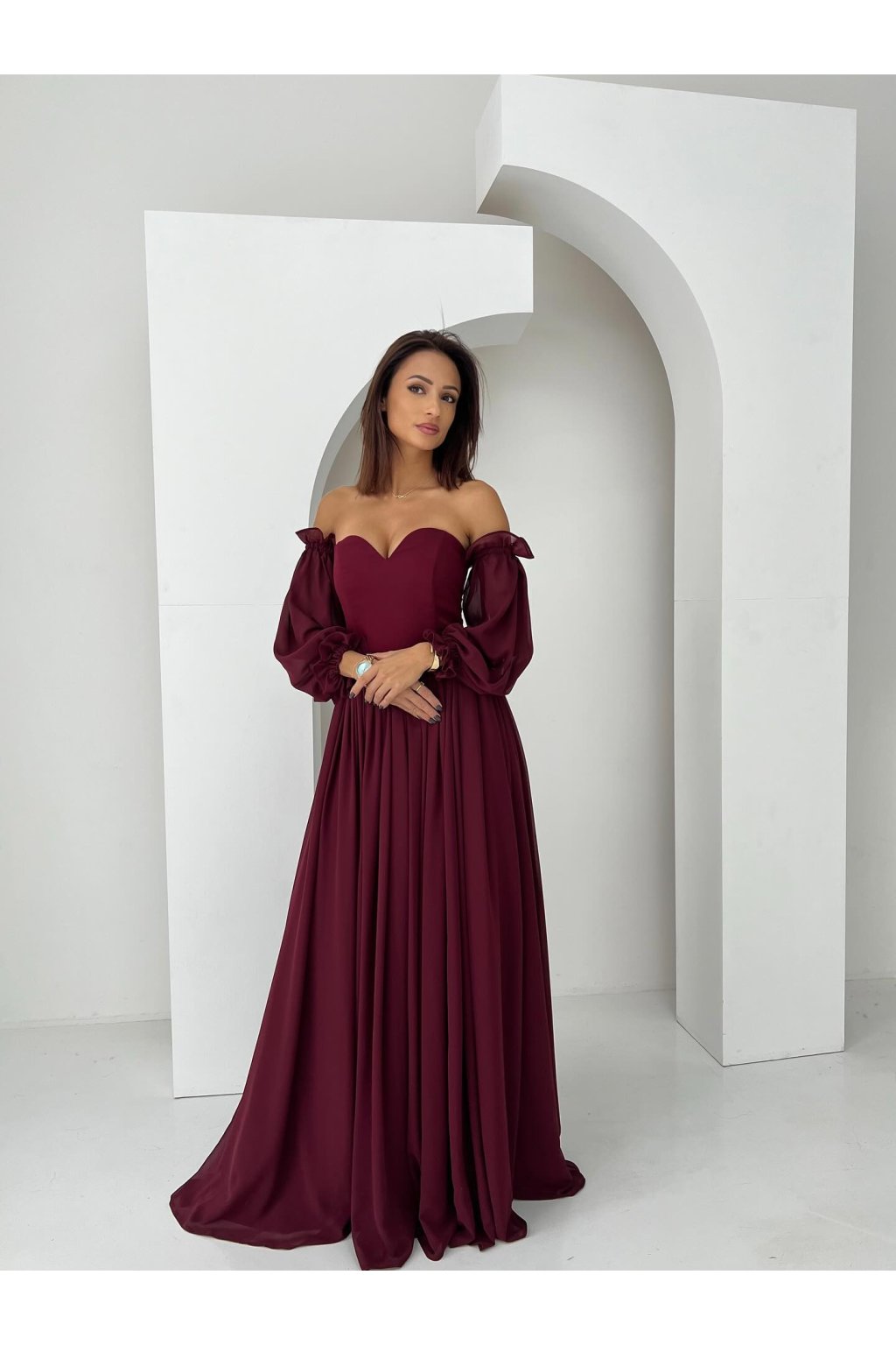 Šaty značky Anabell Mielczarkowski model Princezna v bordo barvě se sundávacími rukávy