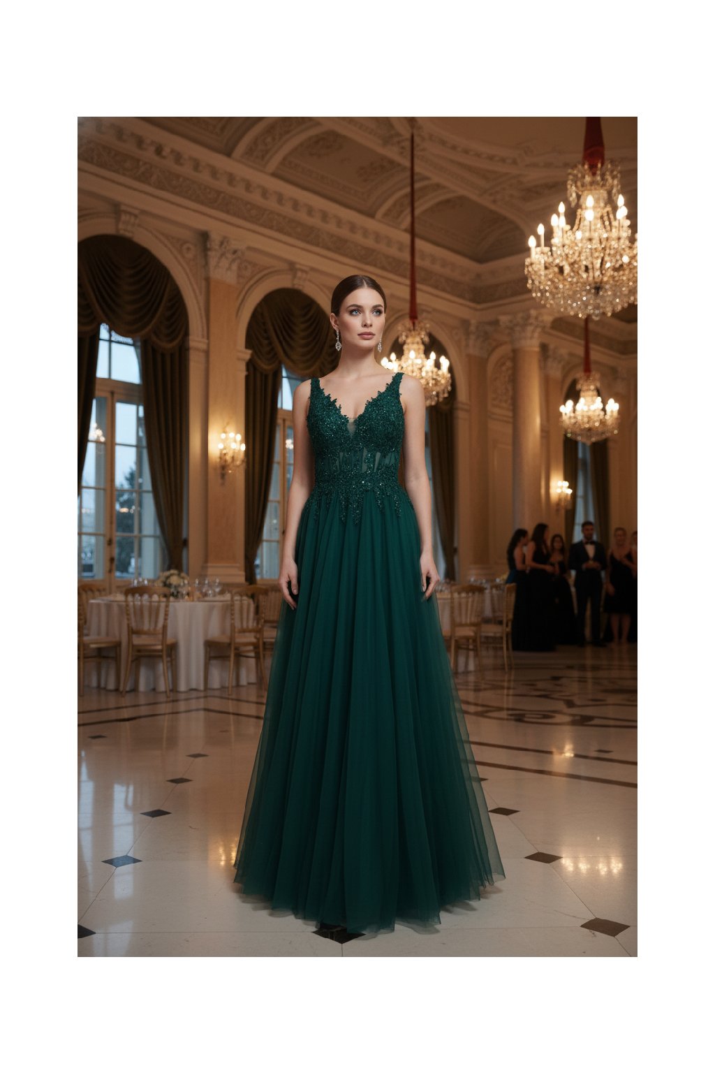 Společenské Maxi šaty značky Diva Fashion Paris model 9232 ve smaragdové barvě