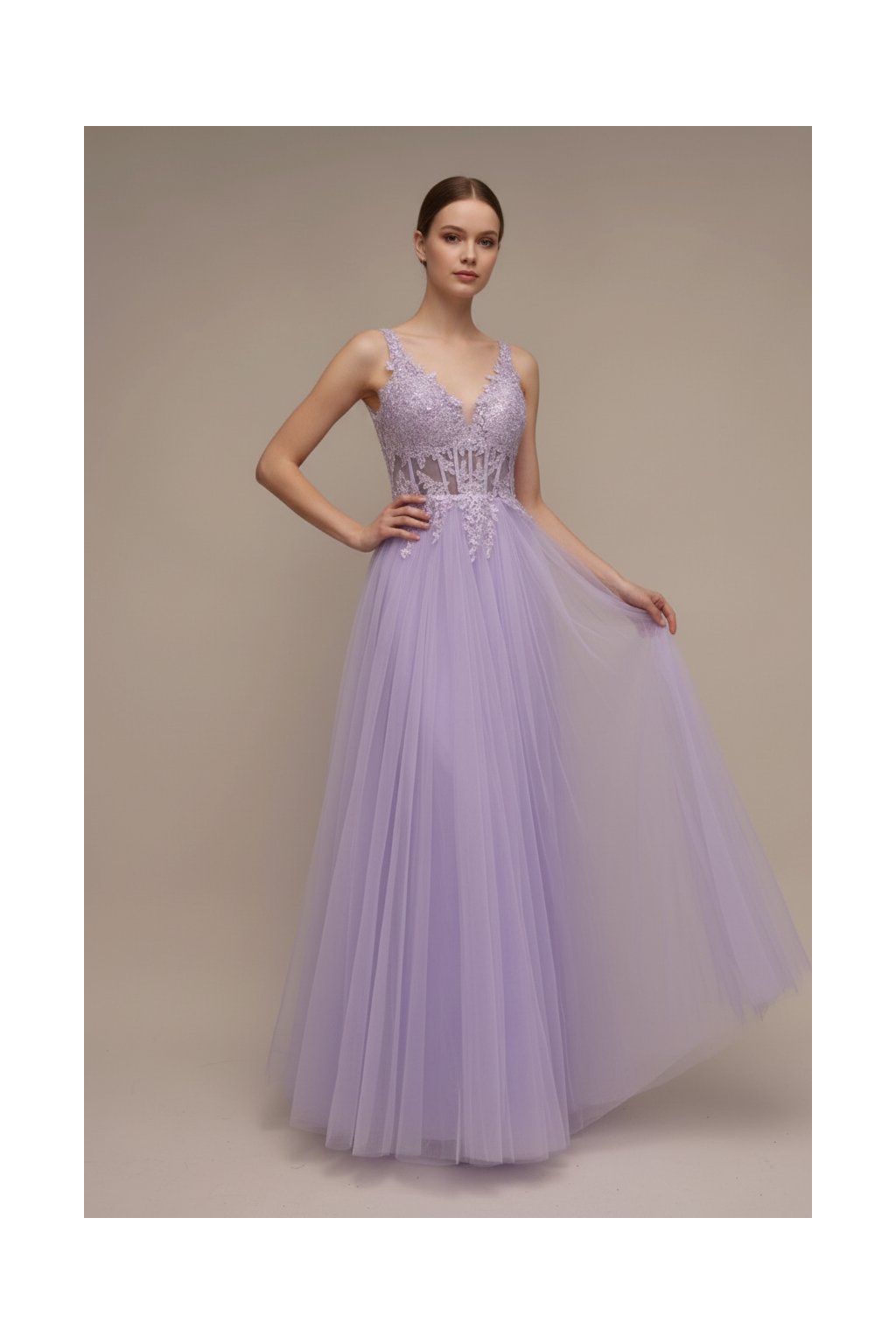 Společenské Maxi šaty značky Diva Fashion Paris model 9232 v lila barvě