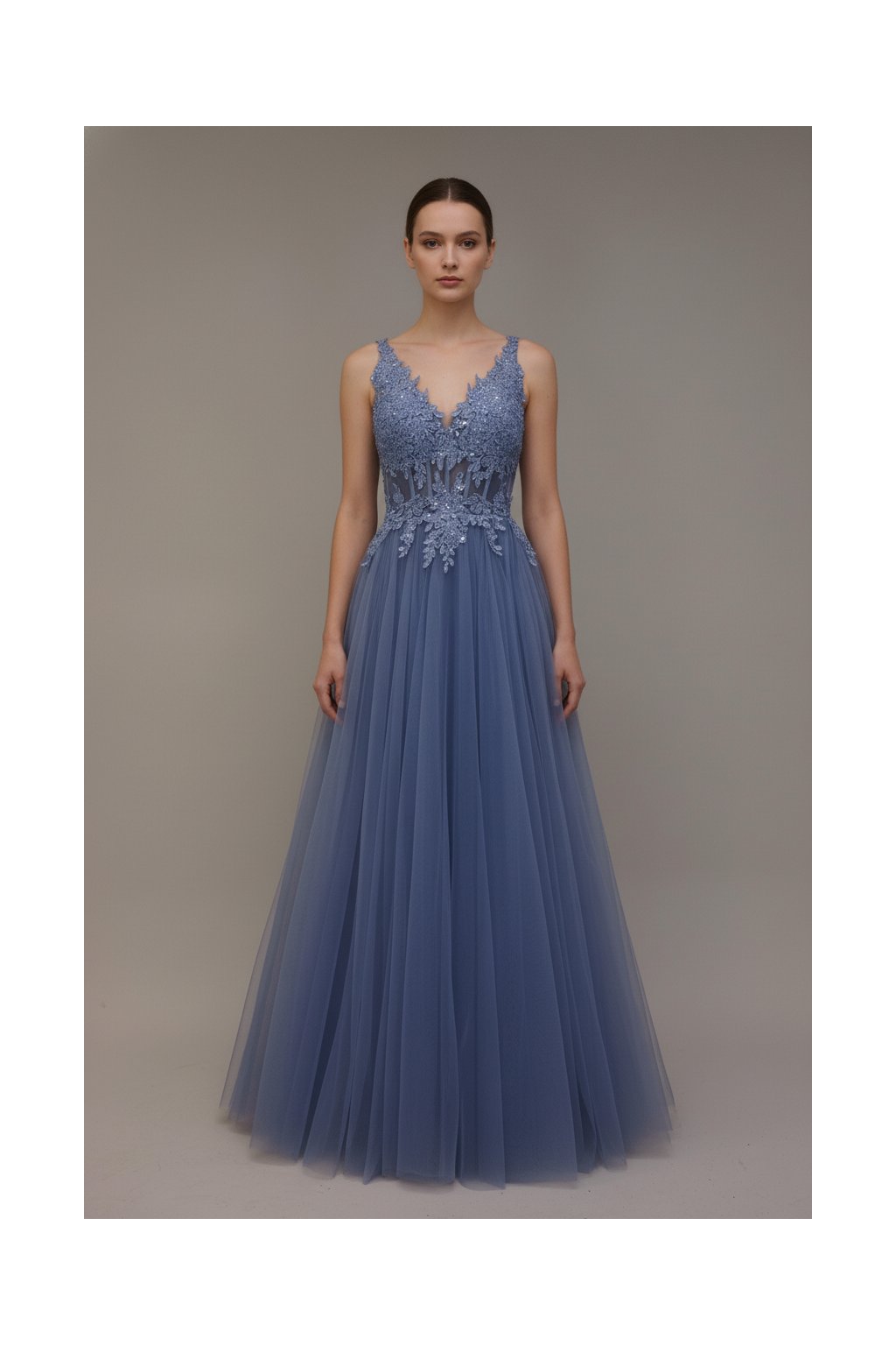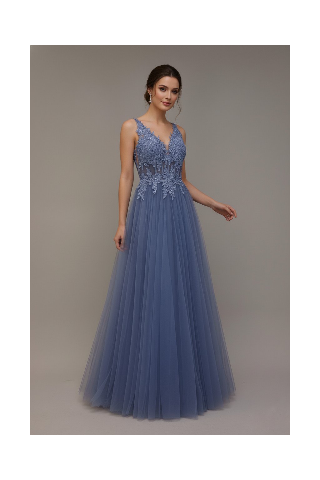 Společenské Maxi šaty značky Diva Fashion Paris model 9232 v modré barvě