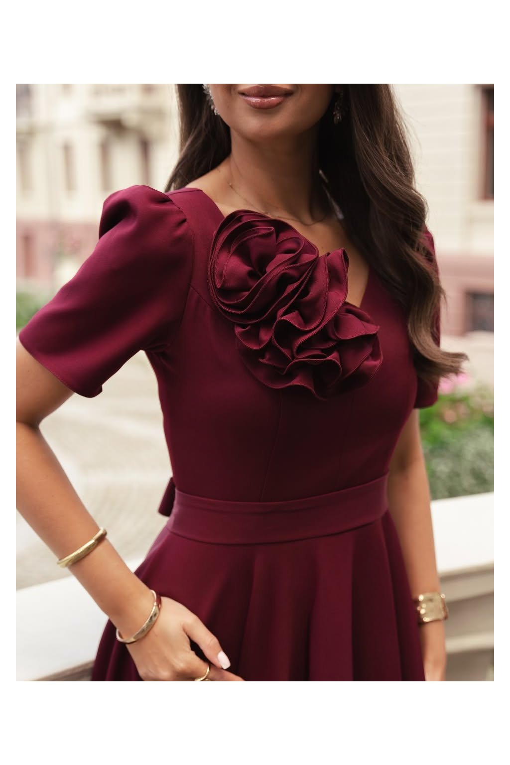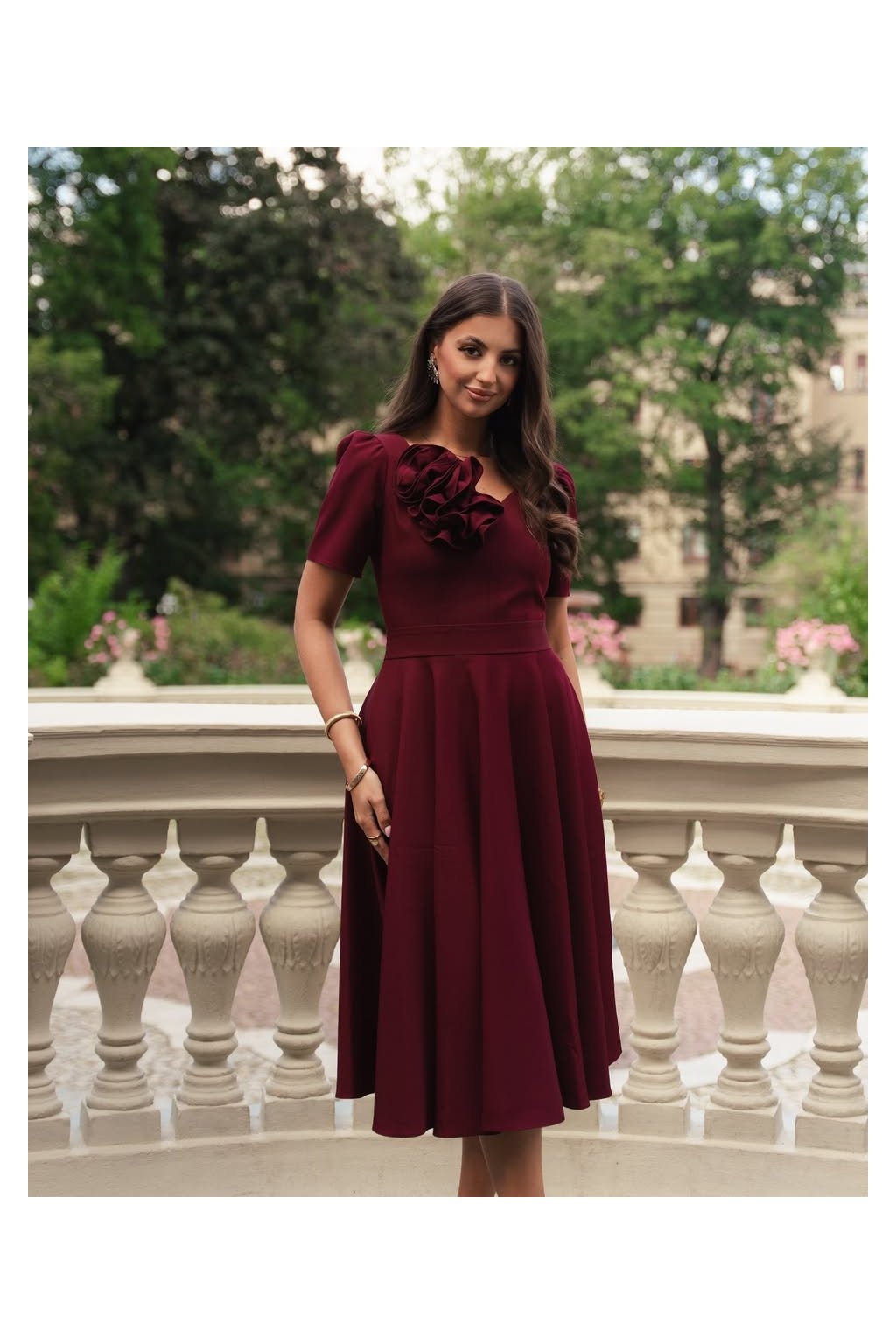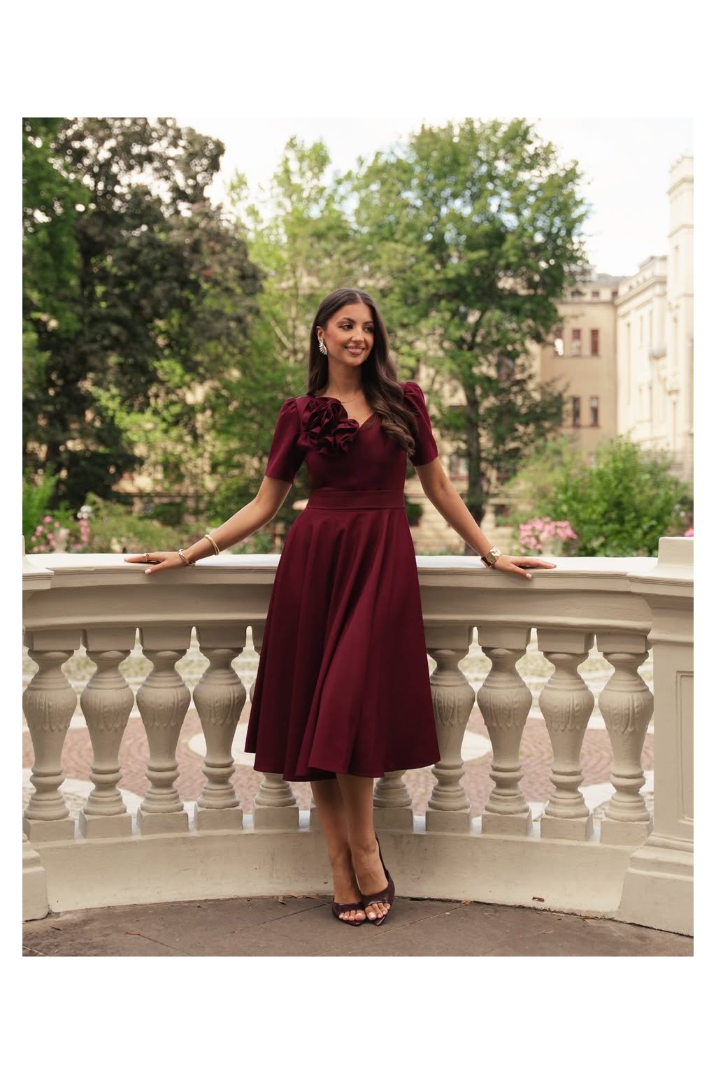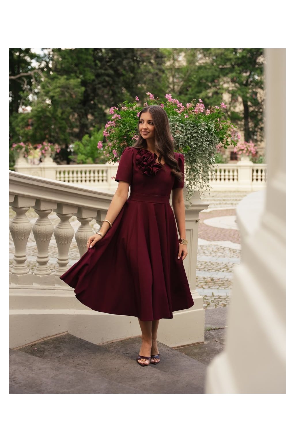Společenské midi šaty značky Elizabeth Collection model Rubi v bordo barvě