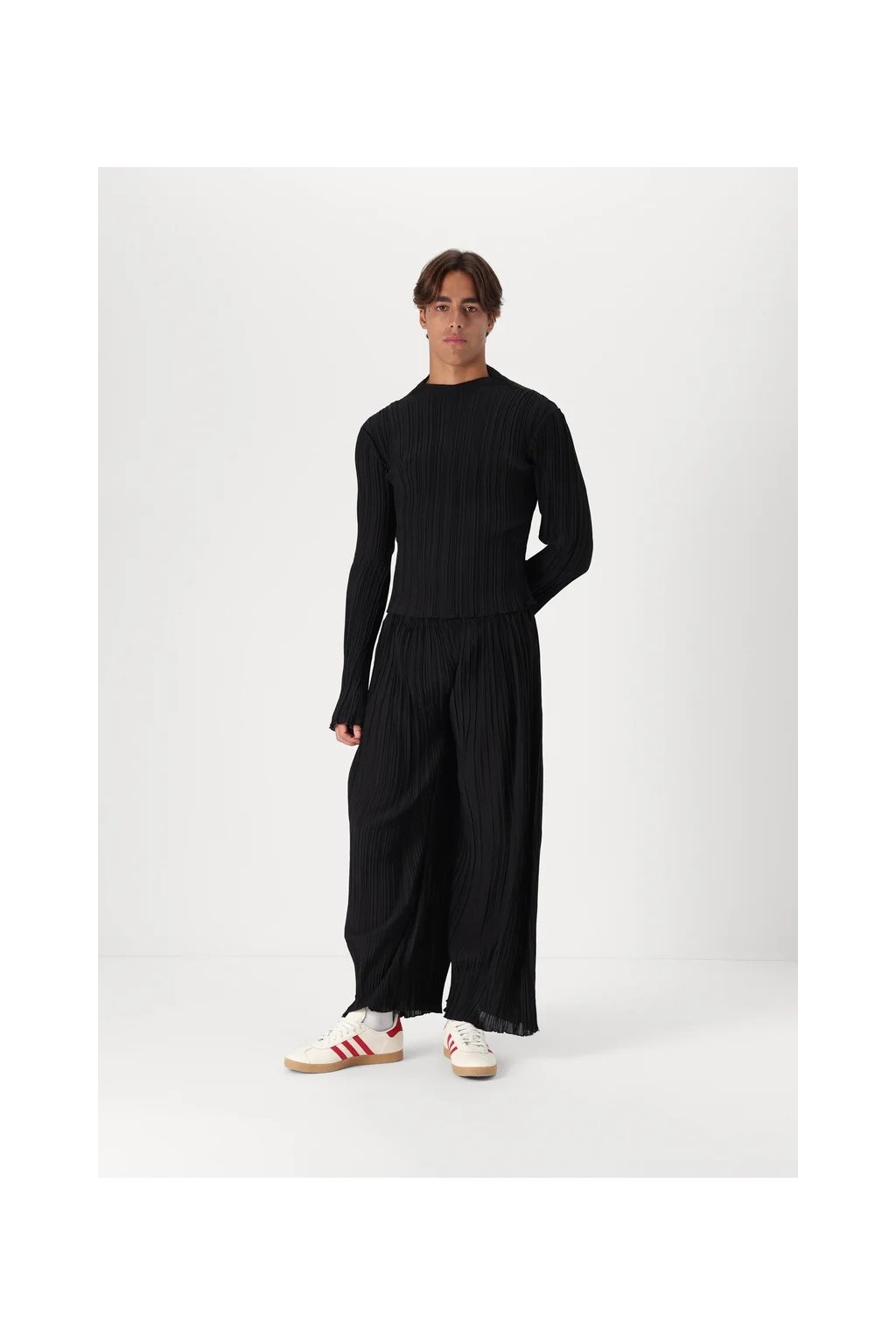 Díky plisované struktuře je top výjimečně flexibilní a nepotřebuje žehlení – ideální na cesty i každodenní nošení. Skvěle se kombinuje s jednoduchými kalhotami, sukní nebo matching kalhotami ze stejné kolekce.