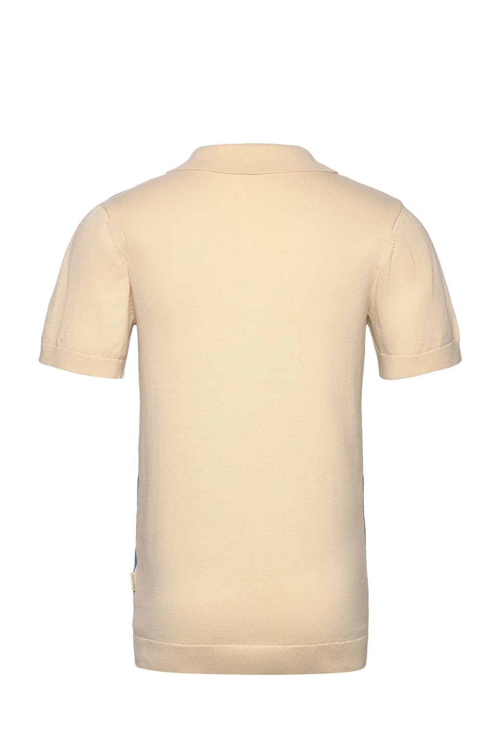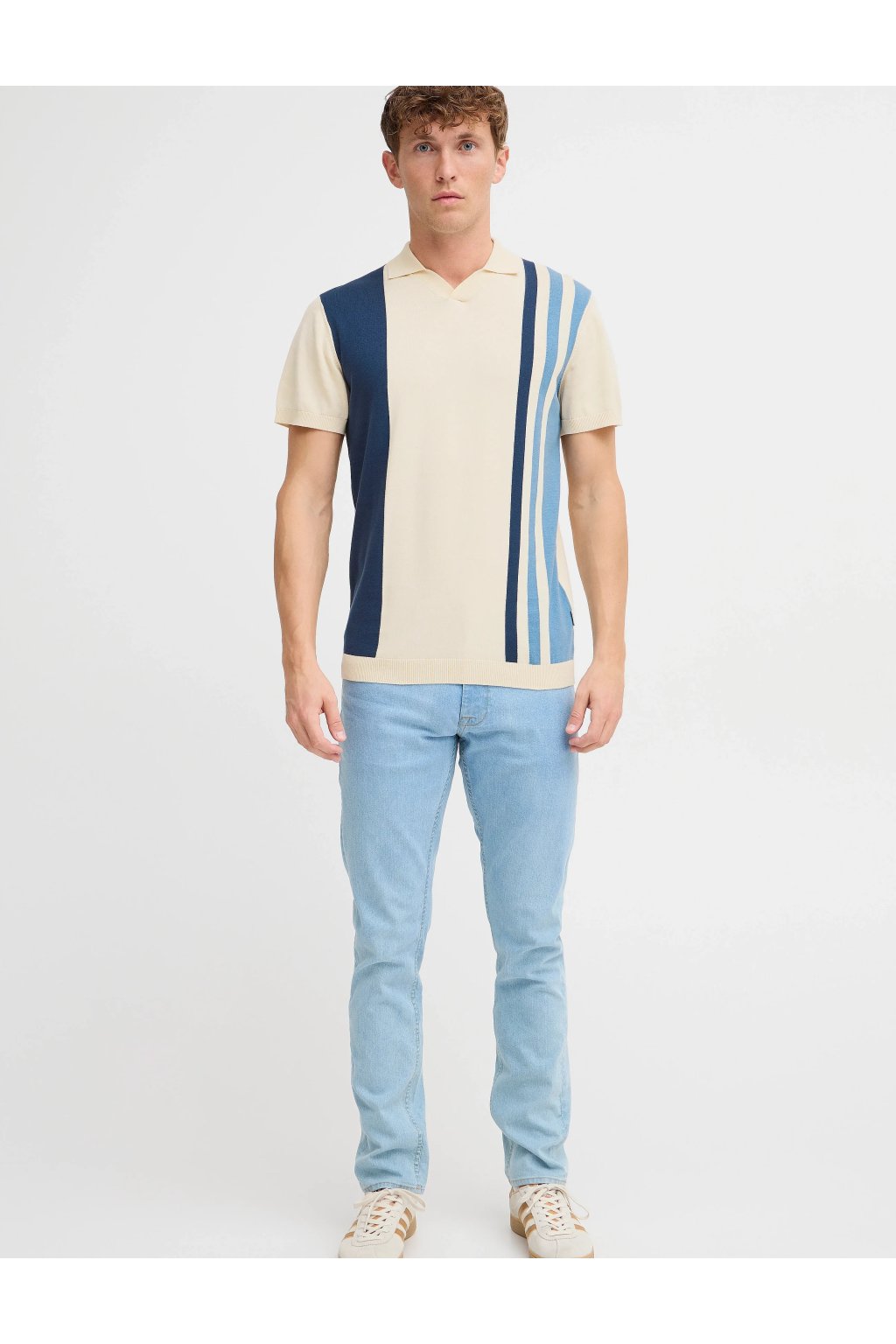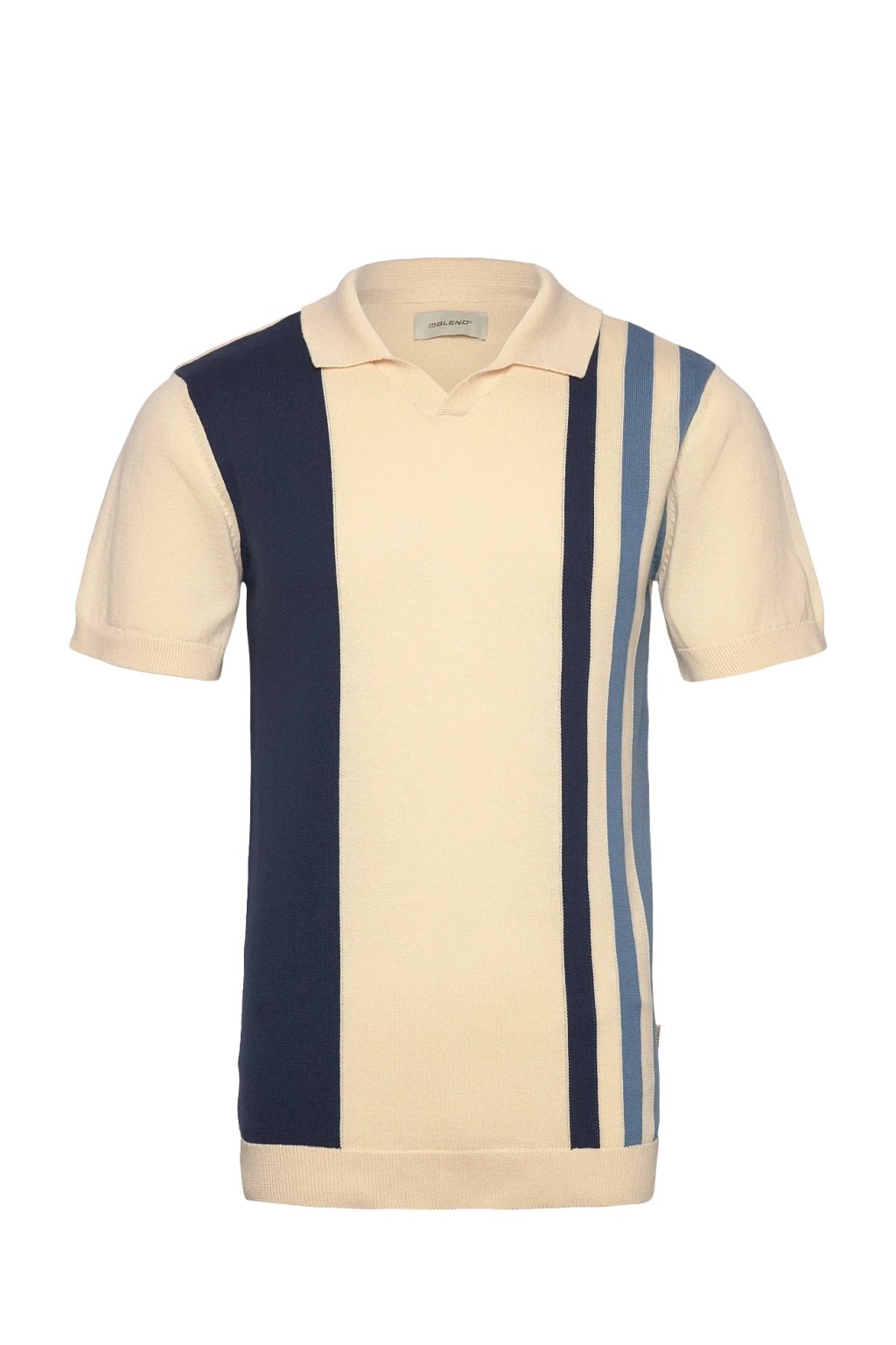 Tričko Polo Knit od značky Blend je pánský kousek s krátkými rukávy, který kombinuje pohodlí a styl. Má elegantní retro nádech díky kombinaci barev béžové, tmavě modré a světle modré v podobě svislých pruhů na přední straně. Límec je klasický polo styl, což dodává triku formálnější a zároveň ležérní vzhled. Materiál vypadá na jemně pletený, což zajišťuje pohodlné nošení i příjemný pocit na kůži. Zadní strana je jednoduchá, jednobarevná v béžovém odstínu, což dává triku čistý a minimalistický look.
