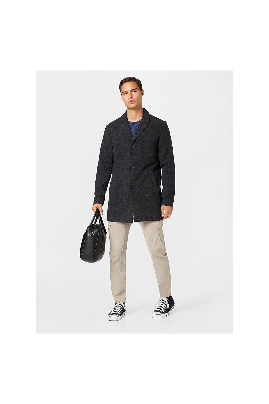 Stylový a nadčasový kabát od značky JACK & JONES v elegantní tmavě šedé barvě je ideální volbou pro chladnější dny. Vyrobený z kvalitního materiálu s jemným herringbone vzorem, kombinuje klasický vzhled s moderním střihem.