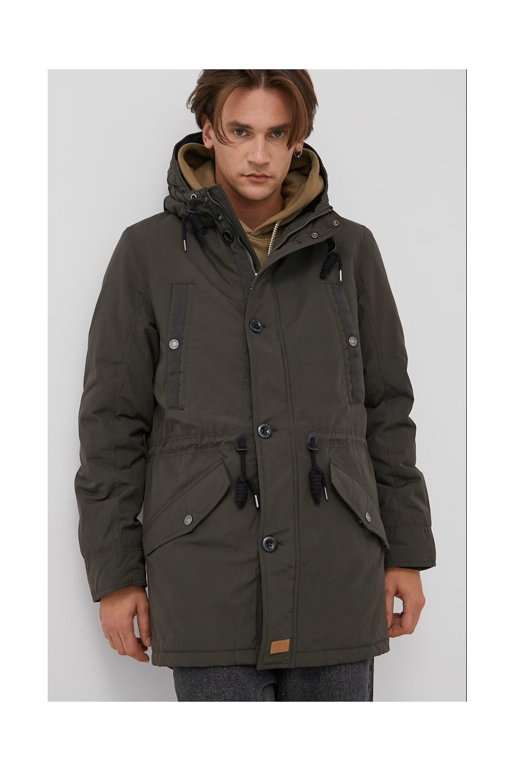 Tom Tailor pánská zimní bunda s kapucí – tmavě zelená