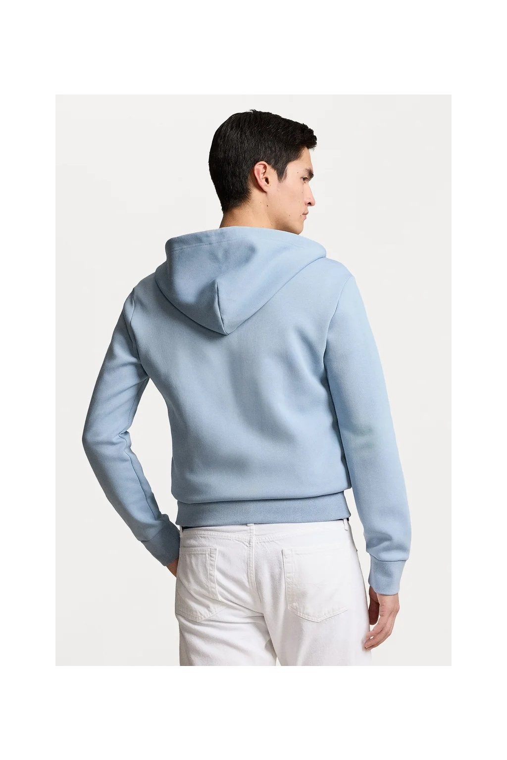 Prémiová mikina na zip s kapucí od značky Polo Ralph Lauren v elegantním světle modrém provedení je skvělým doplňkem pro každodenní outfit. Mikina kombinuje ikonický sportovní styl s vysokou kvalitou zpracování. Je vyrobena z měkké a pružné bavlněné směsi, která zajišťuje pohodlí i styl.