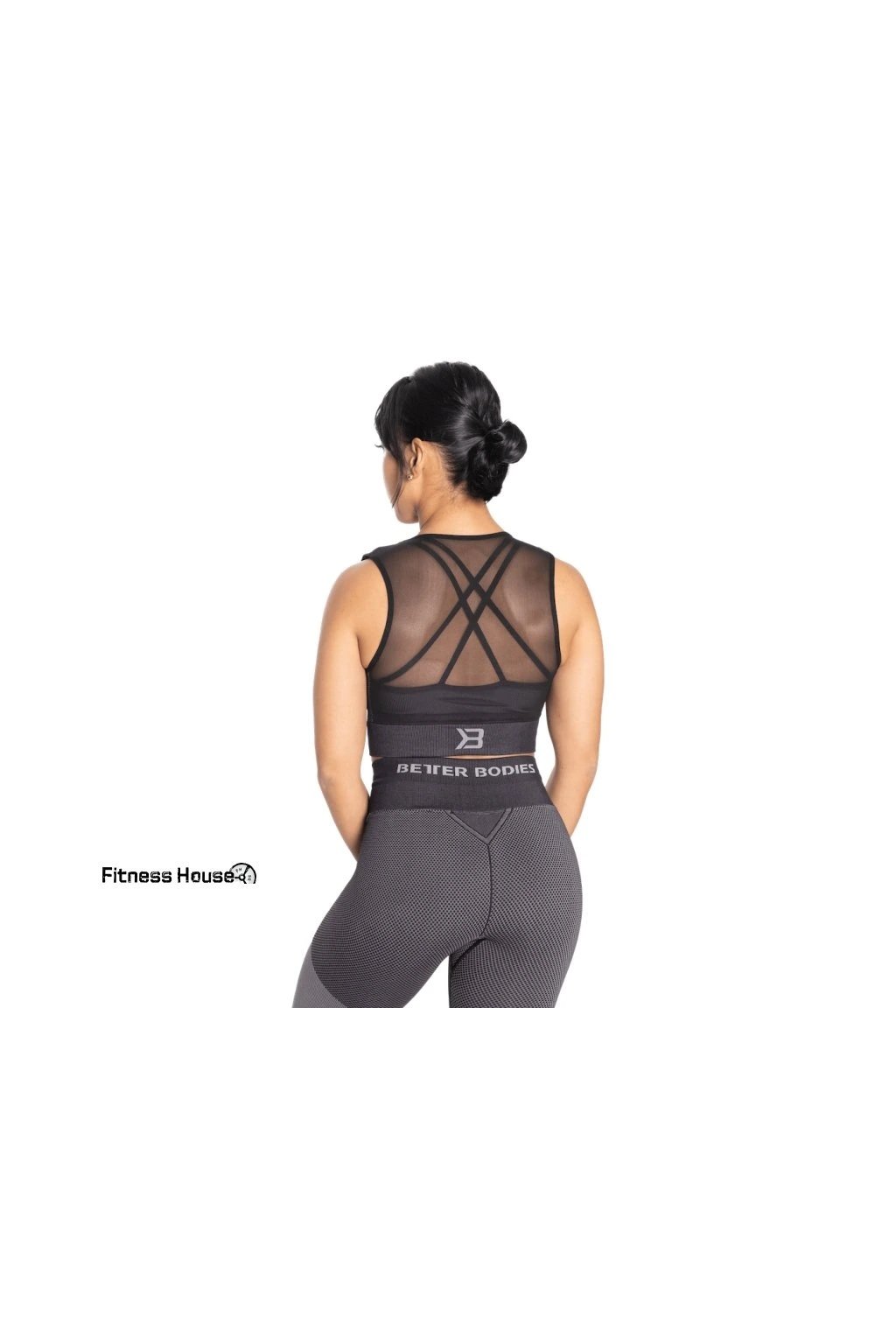 Dámský top Better Bodies ve stylové černo-šedé kombinaci je ideální volbou pro každodenní trénink i volný čas. Díky seamless (bezešvé) konstrukci nabízí maximální pohodlí, perfektní přizpůsobení postavě a čistý sportovní vzhled.