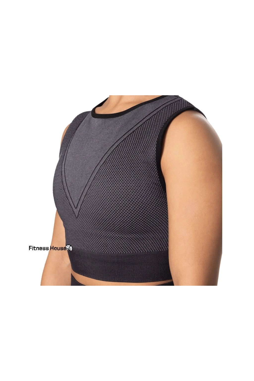 Z přední strany zaujme elegantním strukturovaným vzorem, na zádech pak vyniká průhledná síťovina s efektními překříženými pásky, která nejen skvěle vypadá, ale i zajišťuje prodyšnost. Tílko tak ideálně doplní sportovní podprsenku.