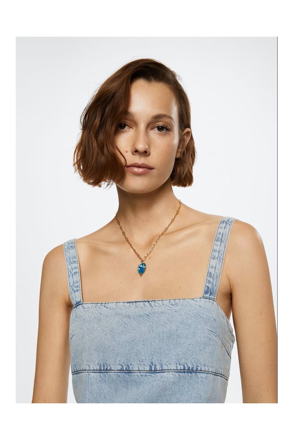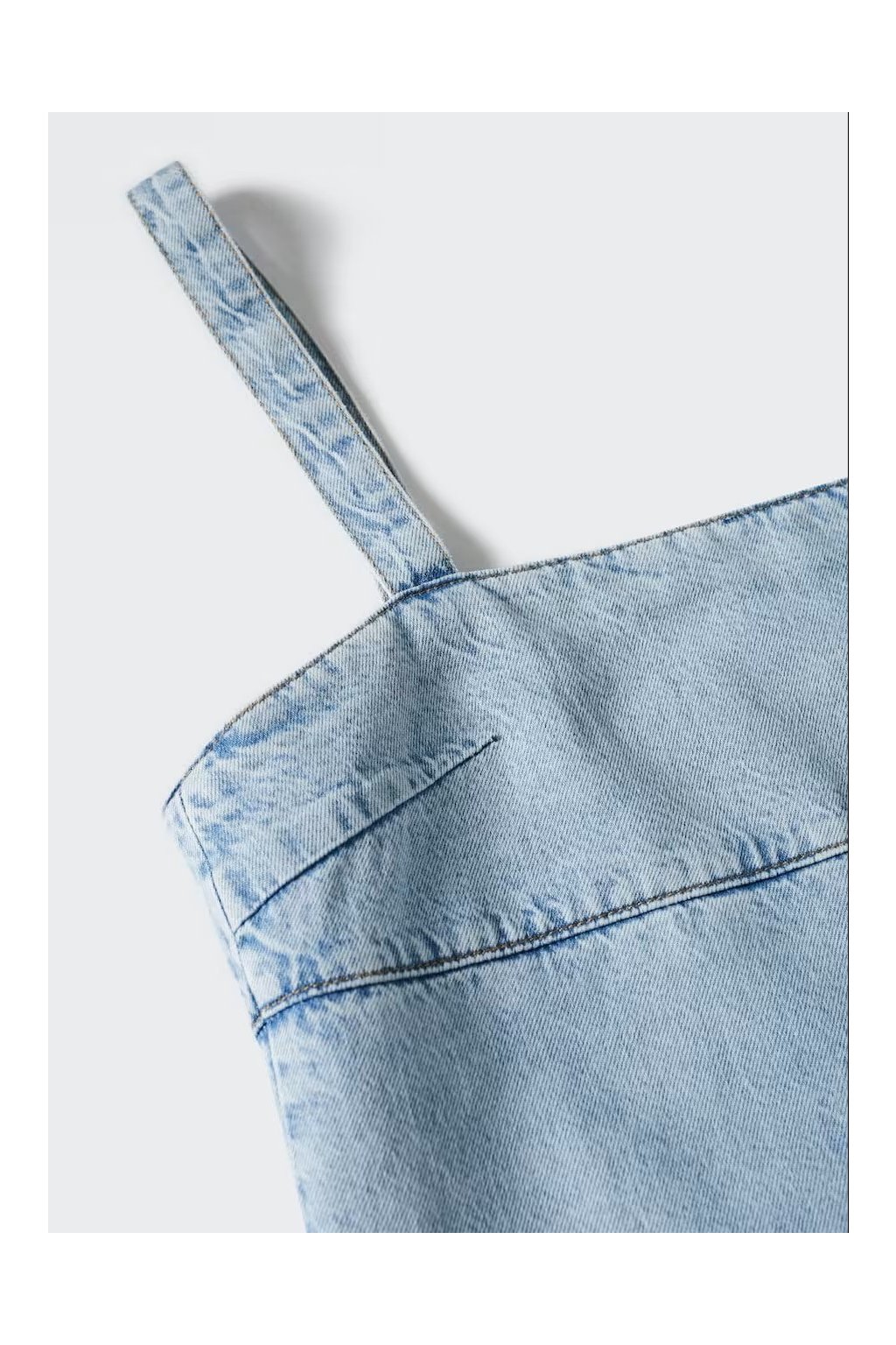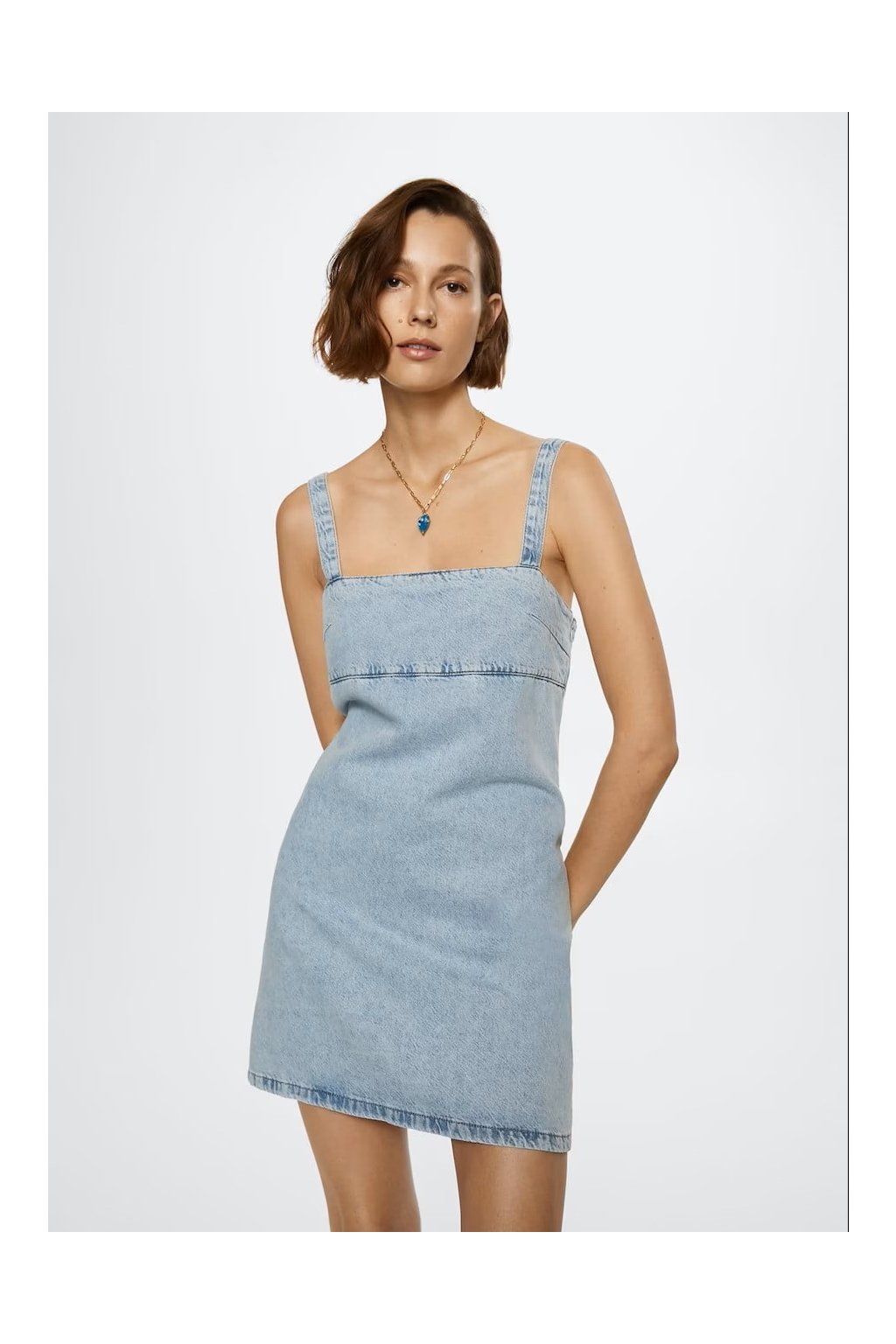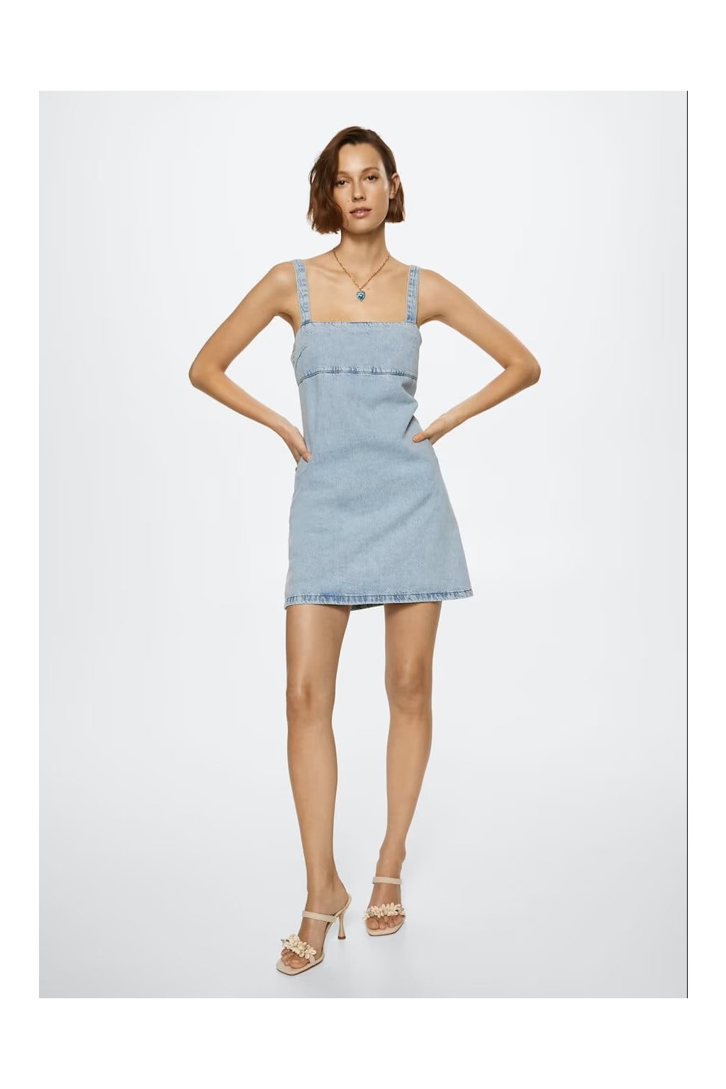 Ikonické džínové minišaty Kyomi od značky MANGO vynikají svou jednoduchostí, čistými liniemi a nadčasovým střihem. Vyrobené z světle modrého denimu, s rovným výstřihem a širšími ramínky, které dodávají šatům elegantní a ženský vzhled.
