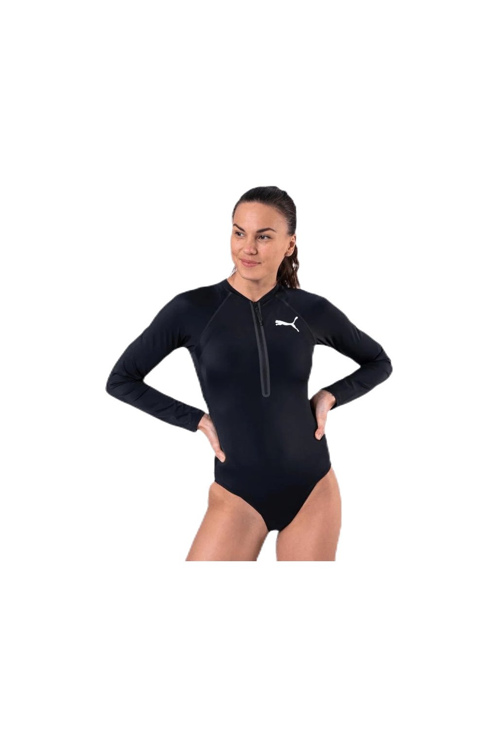 Surf Suit Puma s dlouhým rukávem v elegantní černé barvě je ideální volbou pro všechny milovnice vodních sportů a aktivního pobytu na pláži. Díky přiléhavému střihu a pružnému, rychleschnoucímu materiálu s technologií dryCELL zajišťuje maximální pohodlí, volnost pohybu a efektivní odvod vlhkosti. Praktický přední zip usnadňuje oblékání a slouží také jako ventilační prvek, zatímco dlouhé rukávy poskytují zvýšenou ochranu proti slunci a odřeninám. Jednoduchý, ale stylový design doplňuje decentní logo Puma na hrudi i zádech. Tento surfový oblek je perfektní na surfování, paddleboarding, plavání i další plážové aktivity.
